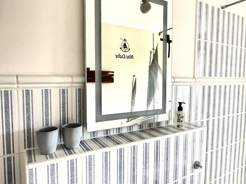 Das kleine Schlafzimmer im Erdgeschoss ist mit einem Einzelbett ausgestattet, das bei Bedarf problemlos zu einem Doppelbett ausgezogen werden kann. Das moderne Badezimmer bietet eine große bodentiefe Dusche, ein Waschbecken, ein WC und ein Fenster für eine angenehme Atmosphäre. Eine Waschmaschine steht Ihnen auch zur Verfügung, damit Sie sich auch im Urlaub wie zu Hause fühlen können.
