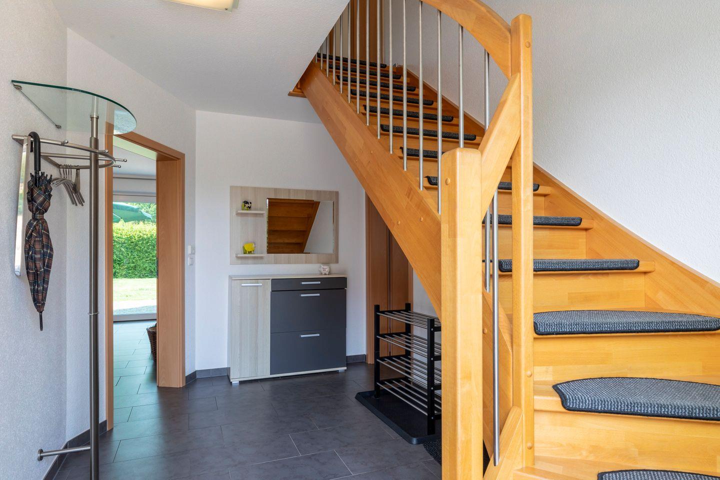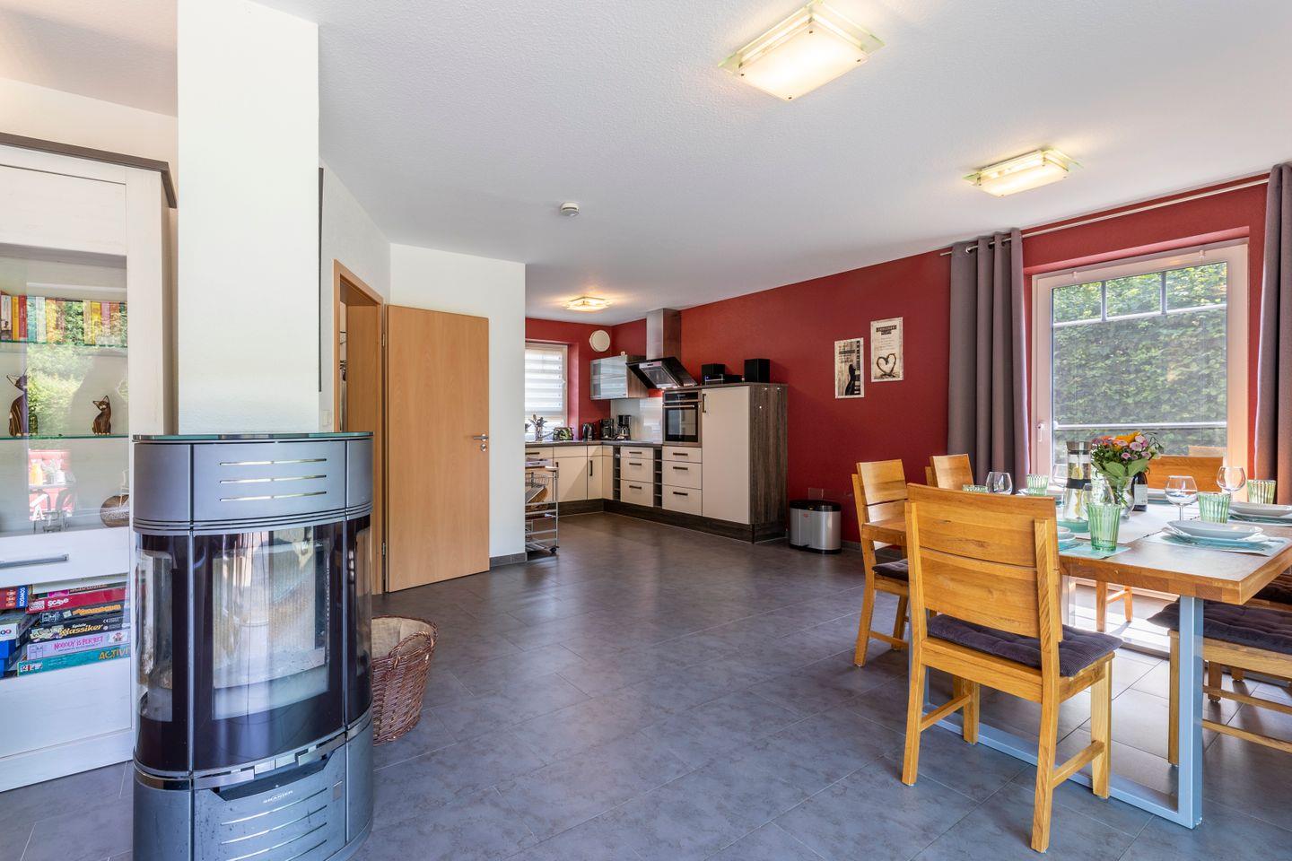 Die hochwertige Ausstattung des Hauses wird Sie begeistern. Entspannen Sie sich nach einem langen Tag in der privaten Sauna und lassen Sie die Seele baumeln. Der gemütliche Kaminofen sorgt für wohlige Wärme und eine behagliche Atmosphäre, perfekt für gemütliche Abende mit Ihren Lieben.
