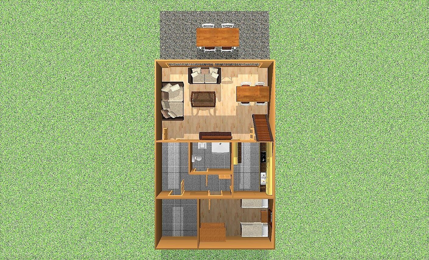 Die Wohnung verfügt über zwei Schlafzimmer, die für eine optimale Privatsphäre sorgen. Das erste Schlafzimmer ist über eine ansprechende Wendeltreppe vom Wohnbereich aus zugänglich. Hier erwartet Sie ein gemütliches Doppelbett, das für erholsame Nächte nach einem erlebnisreichen Tag sorgt. Im zweiten Schlafzimmer im Erdgeschoss befinden sich zwei Einzelbetten, perfekt für Kinder oder Freunde. Beide Schlafzimmer bieten reichlich Stauraum für Kleidung und persönliche Gegenstände.