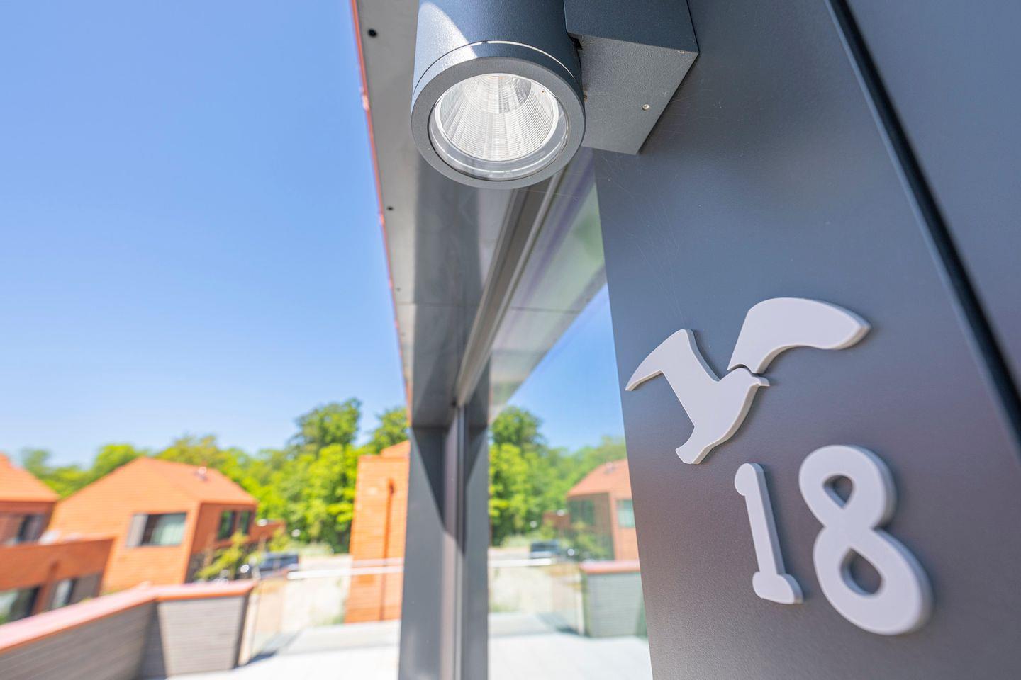 De ole School - nachhaltige Ferienwohnung mit Hygge-Feeling an der Ostsee. Dieses Loft-Apartment, mit z. T. über 6 Meter hohen Decken, vereint auf 148 Quadratmetern einen großzügigen Wohnbereich mit maximaler Privatsphäre. Die lichtdurchflutete Ferienwohnung im skandinavischen Stil bietet bei drei Schlafzimmern und zwei Bädern Platz für die 6 bis max. 10 Gäste. In den Dachkernen von zwei Schlafzimmern liegen Futons für „kletterfeste“ Gäste. Die Küche und der Wohn-/ Essbereich bieten Zutritt auf die ca. 40 m2 große Dachterrasse. Ein Kaminofen sorgt auch in den Wintermonaten für gemütliche Atmosphäre. Eingerichtet ist das Apartment im modernen skandinavischen Stil. Es gibt kostenloses schnelles WLAN, einen Smart-TV und eine komplette Küchenausstattung. Ein intelligentes Schließsystem vereinfacht die Schlüsselübergabe und verbessert die Sicherheit. Jedes Apartment verfügt außerdem über zusätzlichen Stauraum im Keller (inkl. Fahrradkeller, Ladestationen für E-Bikes uvm.).