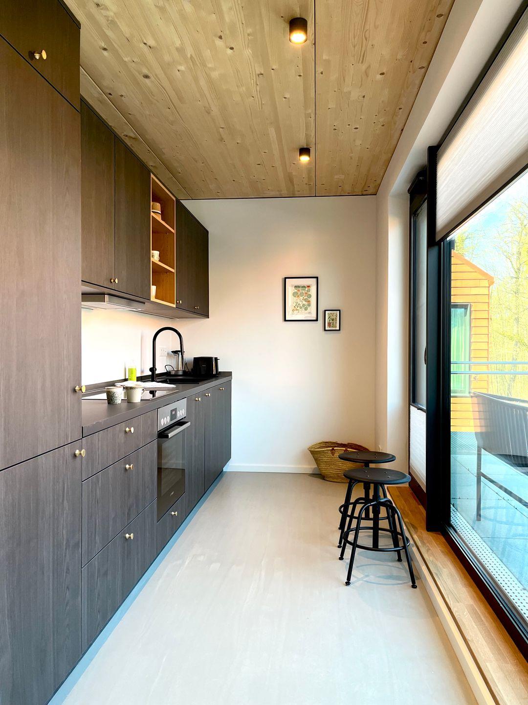 De ole School - nachhaltige Ferienwohnung mit Hygge-Feeling an der Ostsee. Dieses Loft-Apartment, mit z. T. über 6 Meter hohen Decken, vereint auf 148 Quadratmetern einen großzügigen Wohnbereich mit maximaler Privatsphäre. Die lichtdurchflutete Ferienwohnung im skandinavischen Stil bietet bei drei Schlafzimmern und zwei Bädern Platz für die 6 bis max. 10 Gäste. In den Dachkernen von zwei Schlafzimmern liegen Futons für „kletterfeste“ Gäste. Die Küche und der Wohn-/ Essbereich bieten Zutritt auf die ca. 40 m2 große Dachterrasse. Ein Kaminofen sorgt auch in den Wintermonaten für gemütliche Atmosphäre. Eingerichtet ist das Apartment im modernen skandinavischen Stil. Es gibt kostenloses schnelles WLAN, einen Smart-TV und eine komplette Küchenausstattung. Ein intelligentes Schließsystem vereinfacht die Schlüsselübergabe und verbessert die Sicherheit. Jedes Apartment verfügt außerdem über zusätzlichen Stauraum im Keller (inkl. Fahrradkeller, Ladestationen für E-Bikes uvm.).