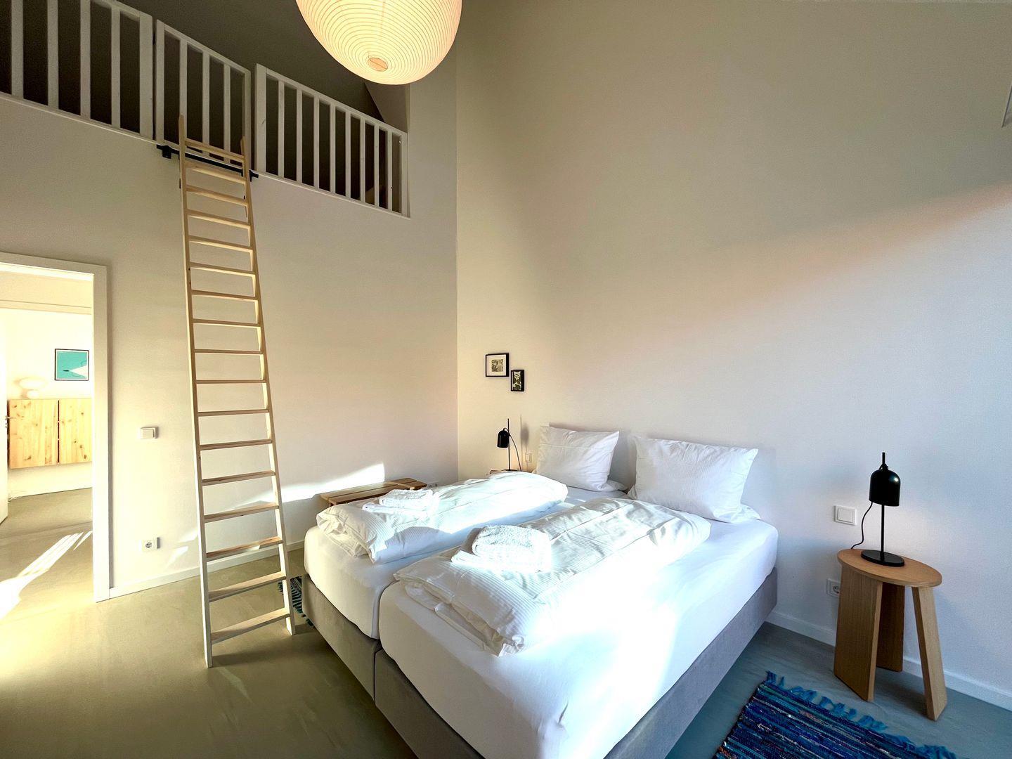 De ole School - nachhaltige Ferienwohnung mit Hygge-Feeling an der Ostsee. Dieses Loft-Apartment, mit z. T. über 6 Meter hohen Decken, vereint auf 148 Quadratmetern einen großzügigen Wohnbereich mit maximaler Privatsphäre. Die lichtdurchflutete Ferienwohnung im skandinavischen Stil bietet bei drei Schlafzimmern, zwei Emporen und zwei Bädern Platz für 6 bis max. 10 Gäste.