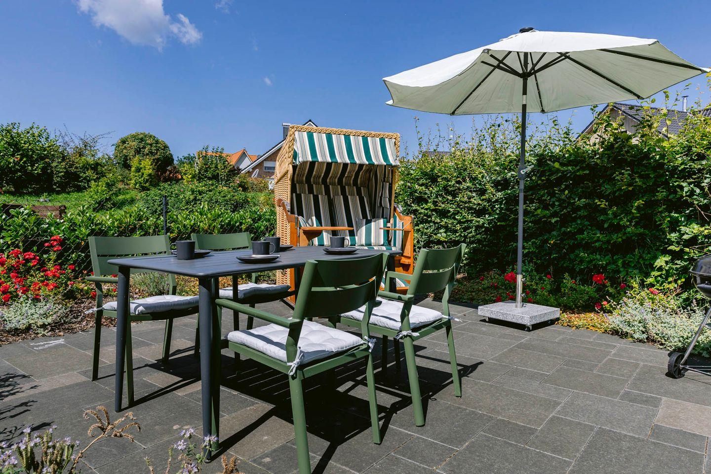 Für Ihre Bequemlichkeit stehen zwei extra breite PKW-Stellplätze zur Verfügung, sodass Sie sich keine Sorgen um die Parkplatzsuche machen müssen. Zwei Terrassen, Rasen und Blühwiese laden dazu ein, die frische Ostseeluft zu genießen und sich im Freien zu entspannen.