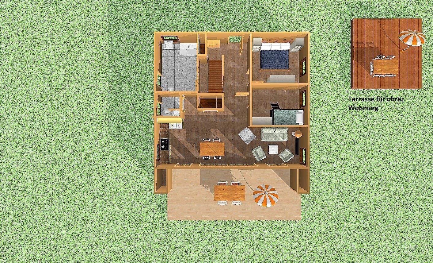 Die Wohnung öffnet sich in einen lichtdurchfluteten Wohn-, Ess- und Küchenbereich. Die Küche ist sehr gut und umfangreich ausgestattet. Hier können Sie nach Herzenslust Leckeres kochen und backen oder auf der Terrasse grillen. Die bequeme Sitzecke lädt zu angenehmen Abenden in guter Gesellschaft ein, um den Tag in entspannter Atmosphäre ausklingen zu lassen.