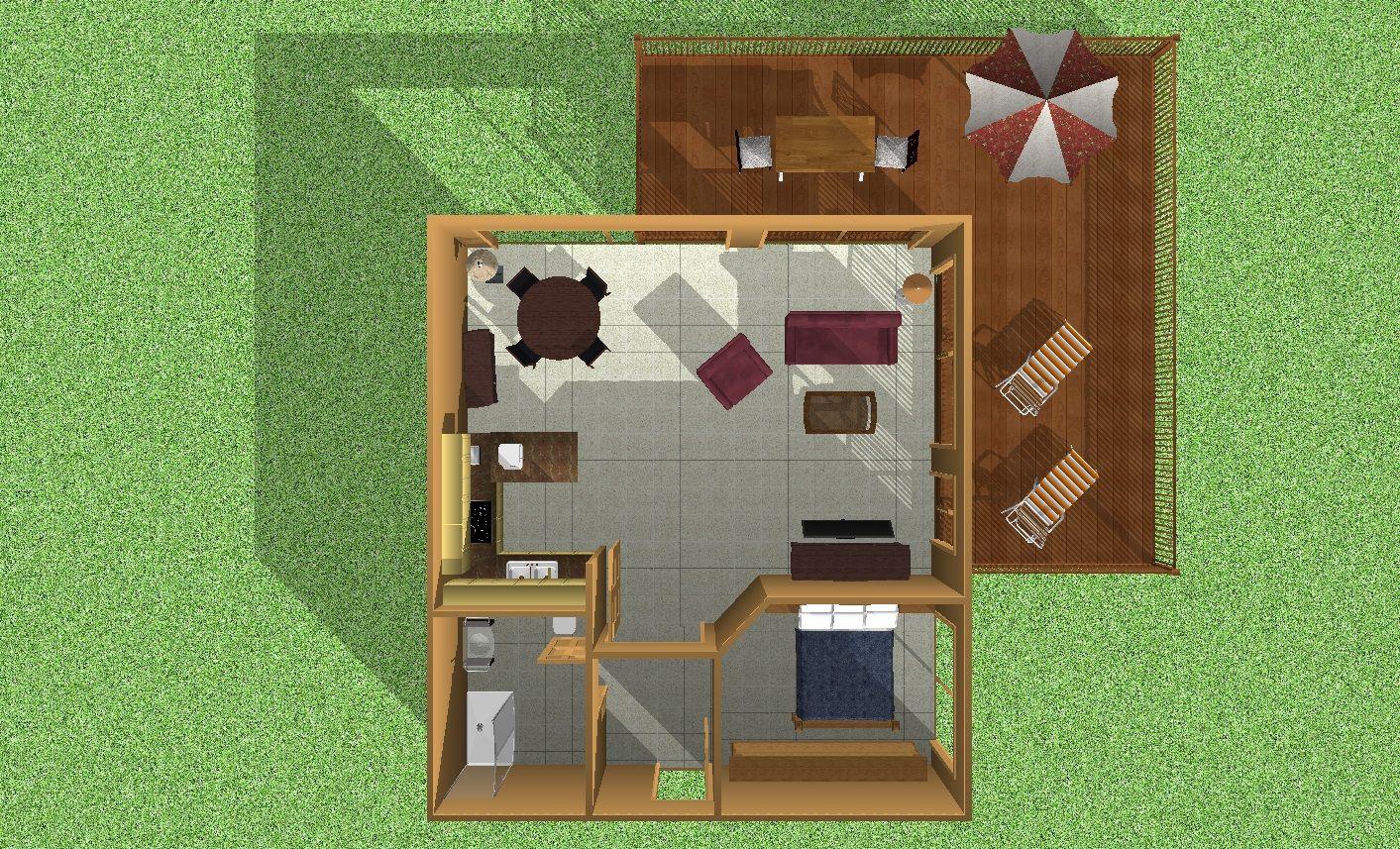 Das separate Schlafzimmer mit einem komfortablen Doppelbett und geräumigem Kleiderschrank sorgt für erholsame Nächte. Der lichtdurchflutete Wohnbereich ist modern eingerichtet und bietet Kabel-TV und WLAN – ideal für gemütliche Abende.