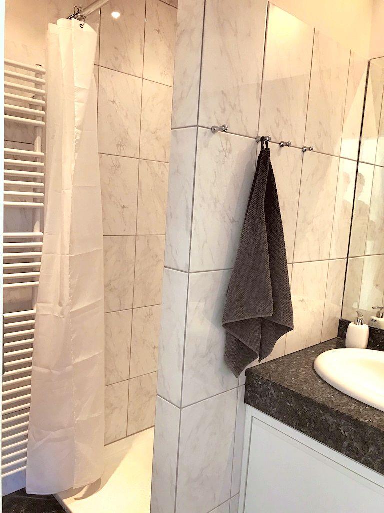 Im stilvollen Duschbad mit großem Spiegel, Handtuchwärmer und Föhn beginnt der Tag besonders angenehm. Hochwertiges Parkett verleiht der Wohnung eine warme Atmosphäre, während die Fußbodenheizung an kühleren Tagen für behagliche Wärme sorgt.