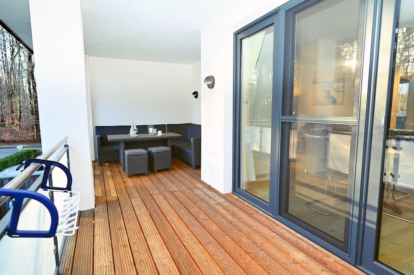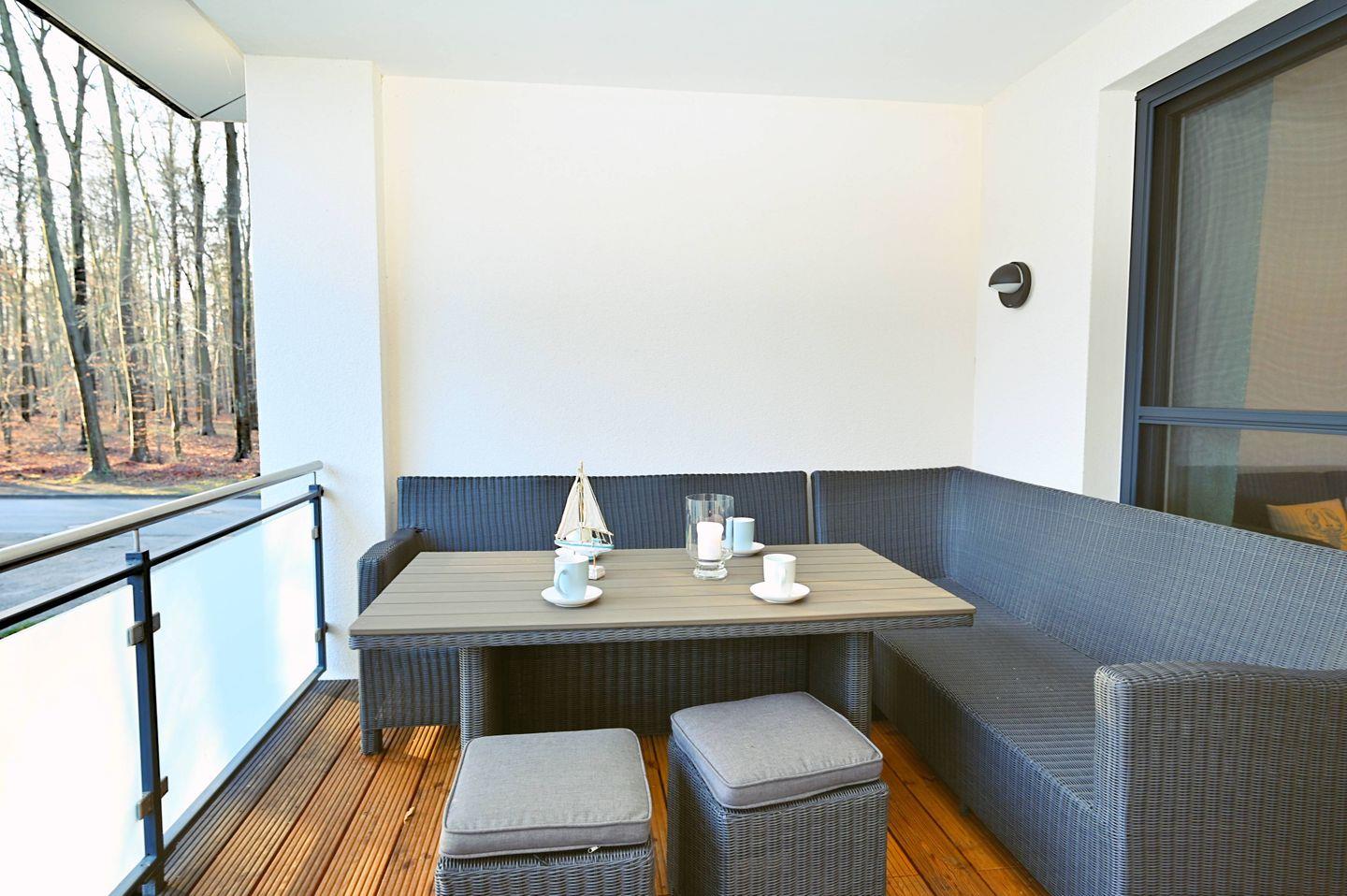 Moderne Ferienwohnung Leuchtfeuer in Hohwacht mit überdachtem Balkon, Strandnähe und vielfältigen Freizeitmöglichkeiten für Familien.