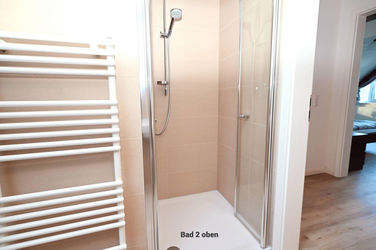 Zwei modern ausgestattete Badezimmer – beide mit bodengleicher Dusche, WC, Waschbecken und Spiegel – sorgen für zusätzlichen Komfort. Zur Ausstattung zählen auch ein Ganzkörperspiegel sowie Haartrockner. Die Waschmaschine und der Trockner stehen zur Eigennutzung bereit, ein Wäscheständer ist ebenfalls vorhanden; so bleiben Sie auch während längerer Aufenthalte flexibel.
