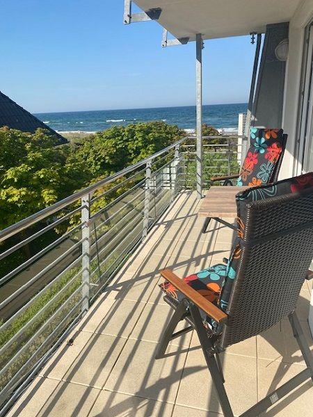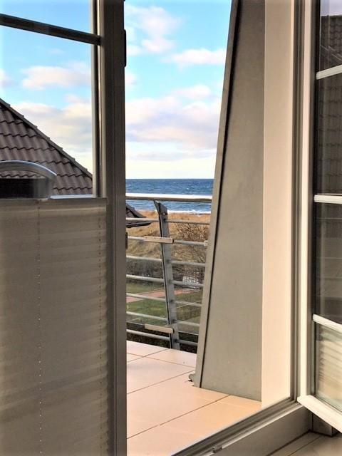 Von dem großen Westbalkon hat man einen herrlichen Meerblick. Nur eine kleine Promenade trennt das Haus Skandinavienblick vom Strand.
