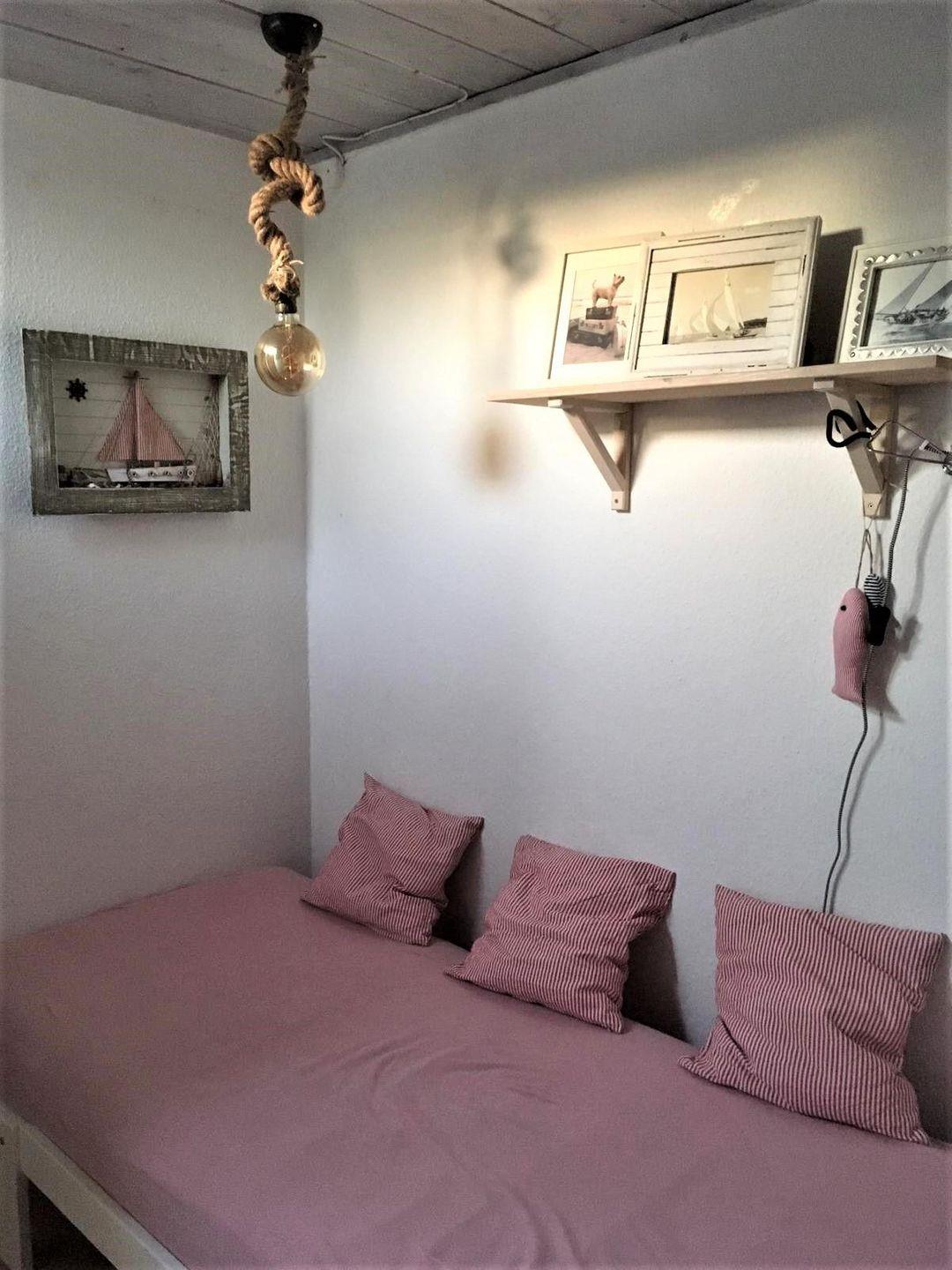 Direkt gegenüber befindet sich ein weiteres kleines, nettes Schlafzimmer mit einem Einzelbett (80x200cm) und Dachfenster. Auch hier wurde die Möblierung liebevoll und mit Blick für Details vorgenommen.