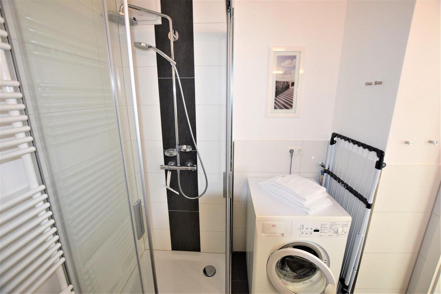 Wohn- und Esszimmer mit offener Küche, LCD-Flachbildschirm, kostenloses Internet (WLAN), Stereoanlage mit Bluetooth Schnittstelle und iPhone Docking Station. Die Einbauküche ist komplett ausgestattet mit Geschirrspüler, Kühlschrank mit Gefrierfach, Herd, Backofen und Mikrowelle. Ein Schlafzimmer mit Doppelbett (160 cm) und ein Schlafzimmer mit zwei Einzelbetten (je 90 cm) sorgen für einen erholsamen Schlaf. Das großzügig gestaltete Badezimmer mit DU/WC, Handtuchwärmer und Regendusche rundet die Ferienwohnung ab. Eine Fußbodenheizung befindet sich in allen Räumen.