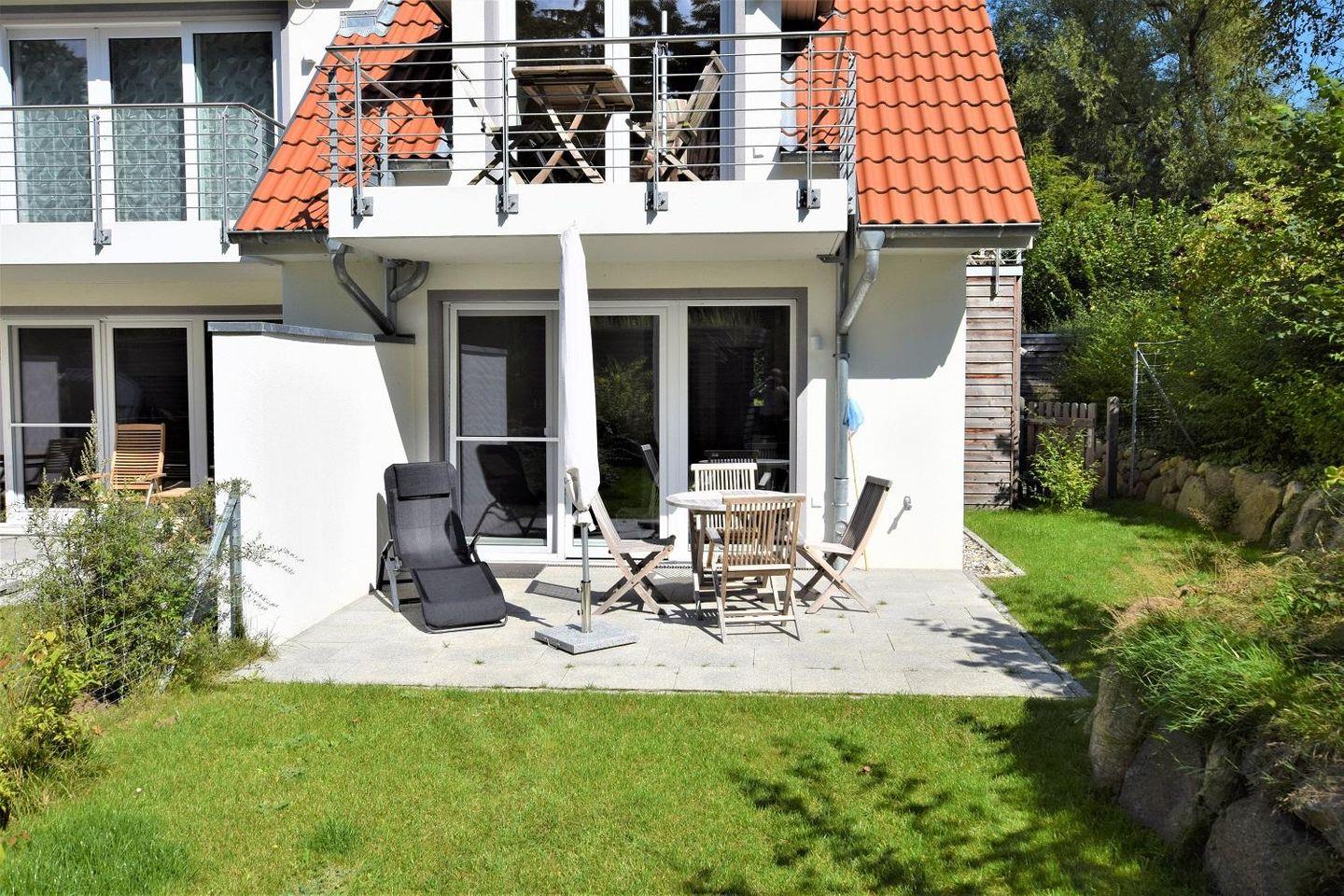 Moderne Ferienwohnung Pier 10 in Hohwacht mit Terrasse, Garten und WLAN, ideal für erholsame Tage am Waldrand.