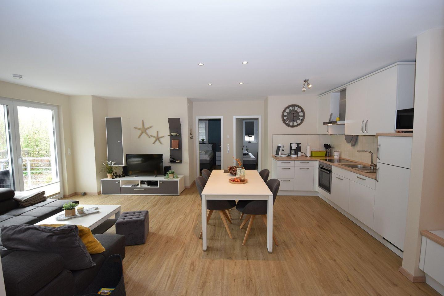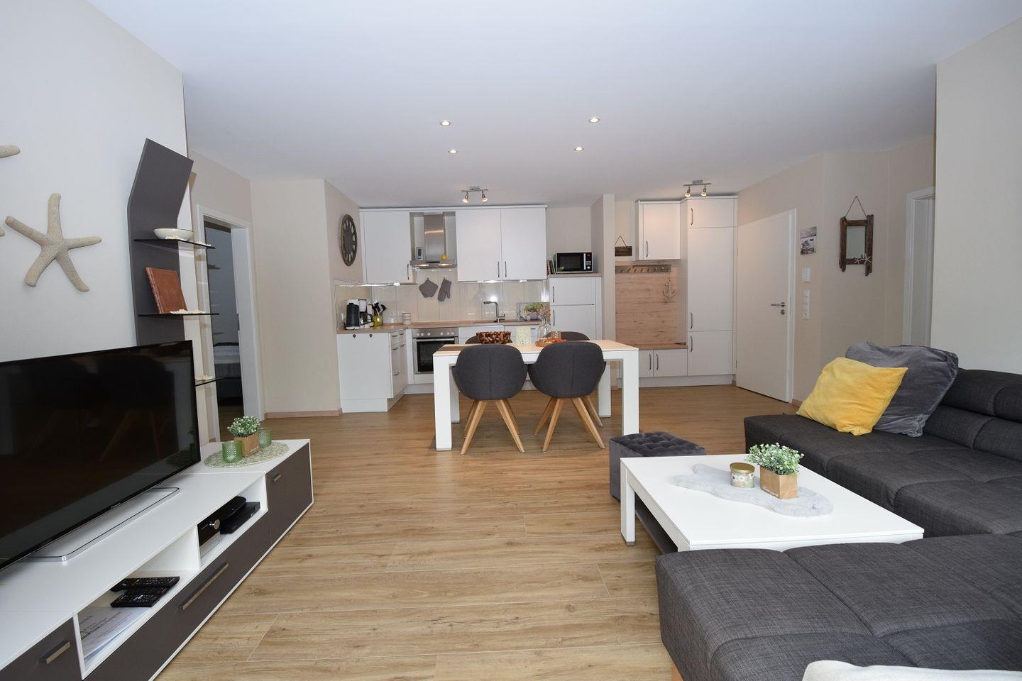 Moderne 70qm Ferienwohnung in Hohwacht mit Balkon, WLAN, Strandkorb und zentraler Lage für eine erholsame Ostsee-Auszeit.