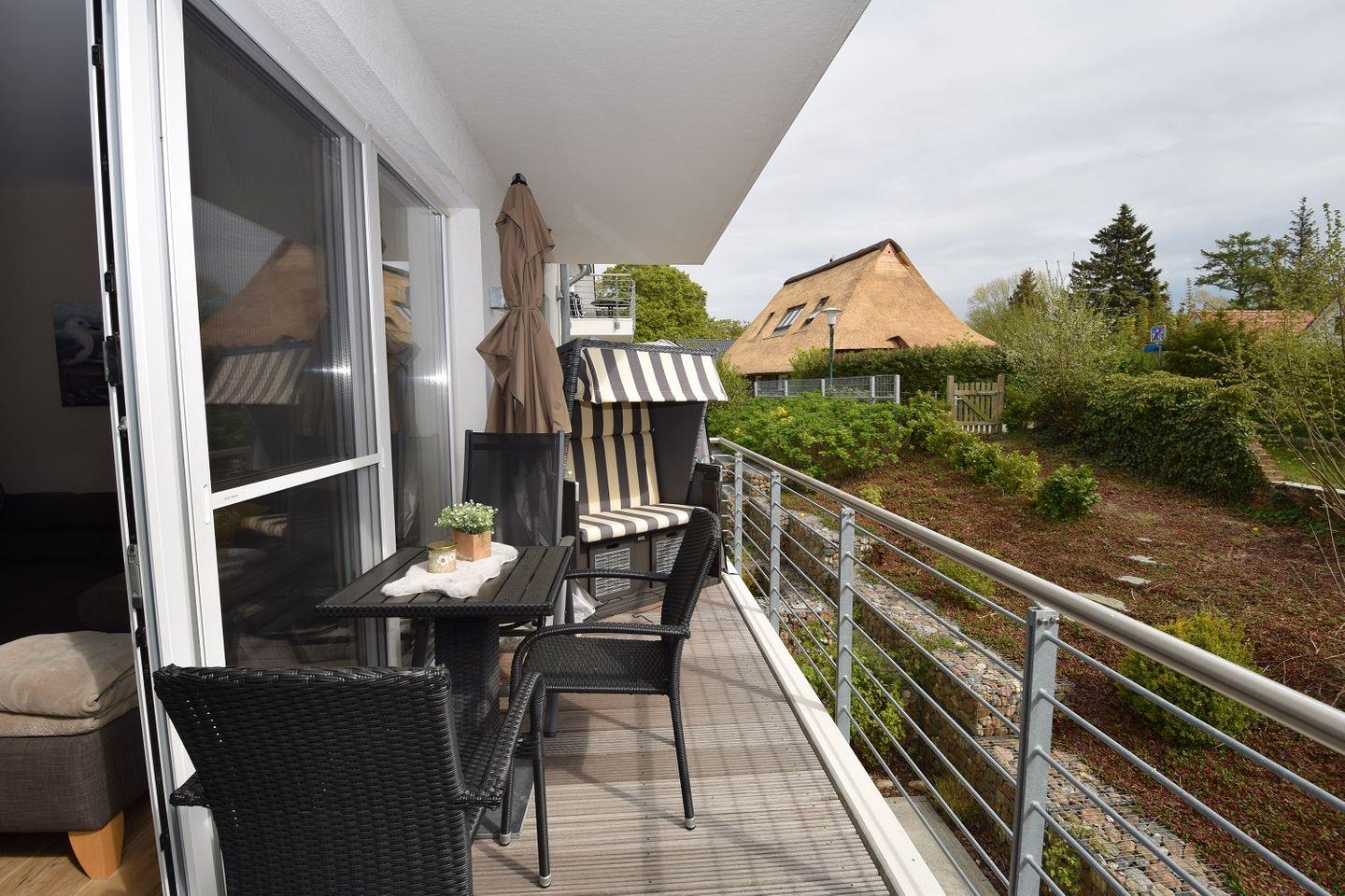 In der Ferienwohnung erwarten Sie viele weitere Annehmlichkeiten wie Fliegengitter an Fenstern und Terrassentür, Verdunklungsmöglichkeiten in den Schlafräumen und ein Balkon mit bequemen Gartenmöbeln. Zudem können Sie saisonal einen eigenen Strandkorb am Strand nutzen. Auch für Familien mit Kleinkindern ist gesorgt, denn eine Wickelauflage steht bereit und auf Anfrage können ein Kinderreisebett und Hochstühle gestellt werden.