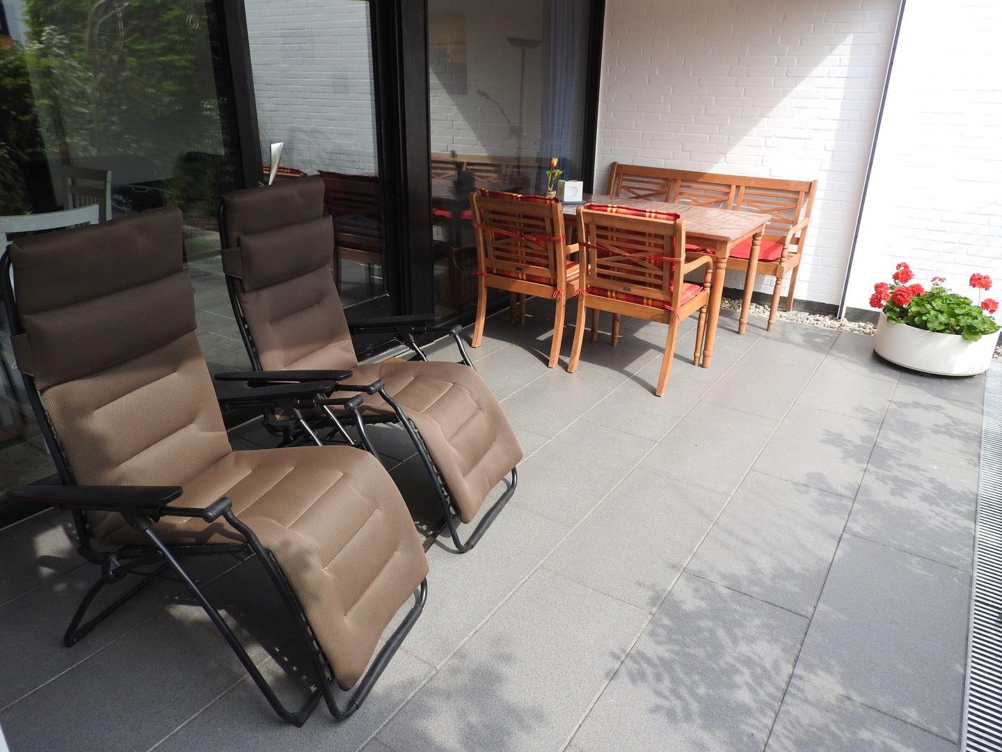 Ferienwohnung für 2-4 Personen mit windgeschützter, großer Südterrasse mit XL-Aircraft-Gesundheits-/Relaxliegen