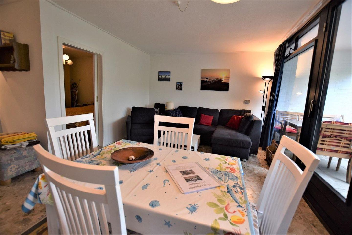 Die Ferienwohnung liegt fernab vom Verkehr auf einem Steilufer, ein kleiner Weg führt direkt ans Meer. Für alle Frischluftfanatiker: Eine großzügige, windgeschützte, vollmöblierte Südterrasse ermöglicht auch ein Sonnenbad in den Zwischenjahreszeiten. Im Sommer ist die Wohnung angenehm kühl. Die Wohnung wurde komplett renoviert und ist mit hochwertigen Möbeln bestückt. 2019 wurde das Bad mit einer neuen Wellnessdusche bestückt und 2020 die Terrasse erneuert. 2021 folgte der Einbau eines dimmbaren, neuen LED-Spiegelschranks im Bad. 2022 wurde das neue Multiradio 4.0 gekauft, das internetgestützt Radio und Musik empfangen kann. Im Jahr 2024 ist der WLAN-Zugang verstärkt worden. Die Wohnung hat eine ausgezeichnete Ausstattung und ist sehr gut gepflegt! Ein Stellplatz für den PKW steht zur Verfügung.