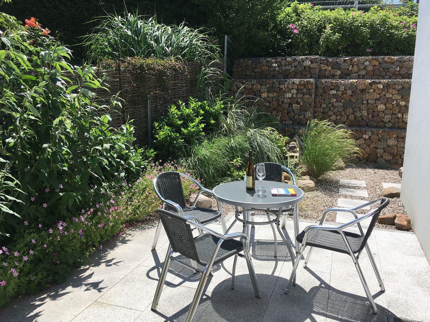 Die Wohnung bietet Ihnen viel Platz zum Verweilen und Entspannen. Sie ist von 2 sonnigen Terrassen mit insgesamt 40 qm Fläche umgeben. Der Außenbereich ist mit Gartenmöbeln, 2 Liegen, Sonnenschirm und Strandkorb ausgestattet.