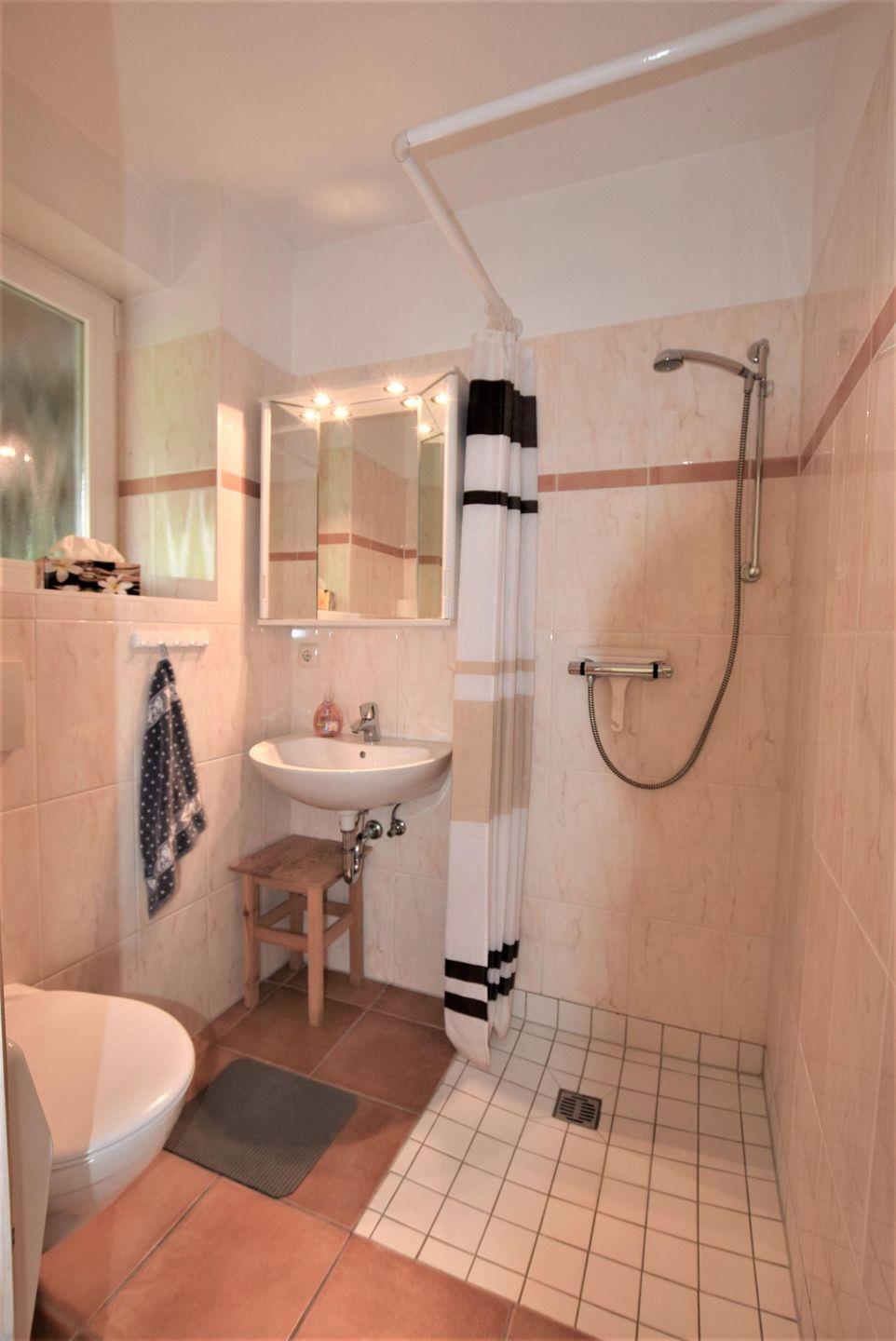 1 Badezimmer mit Wellness-dusche, WC und Sauna.