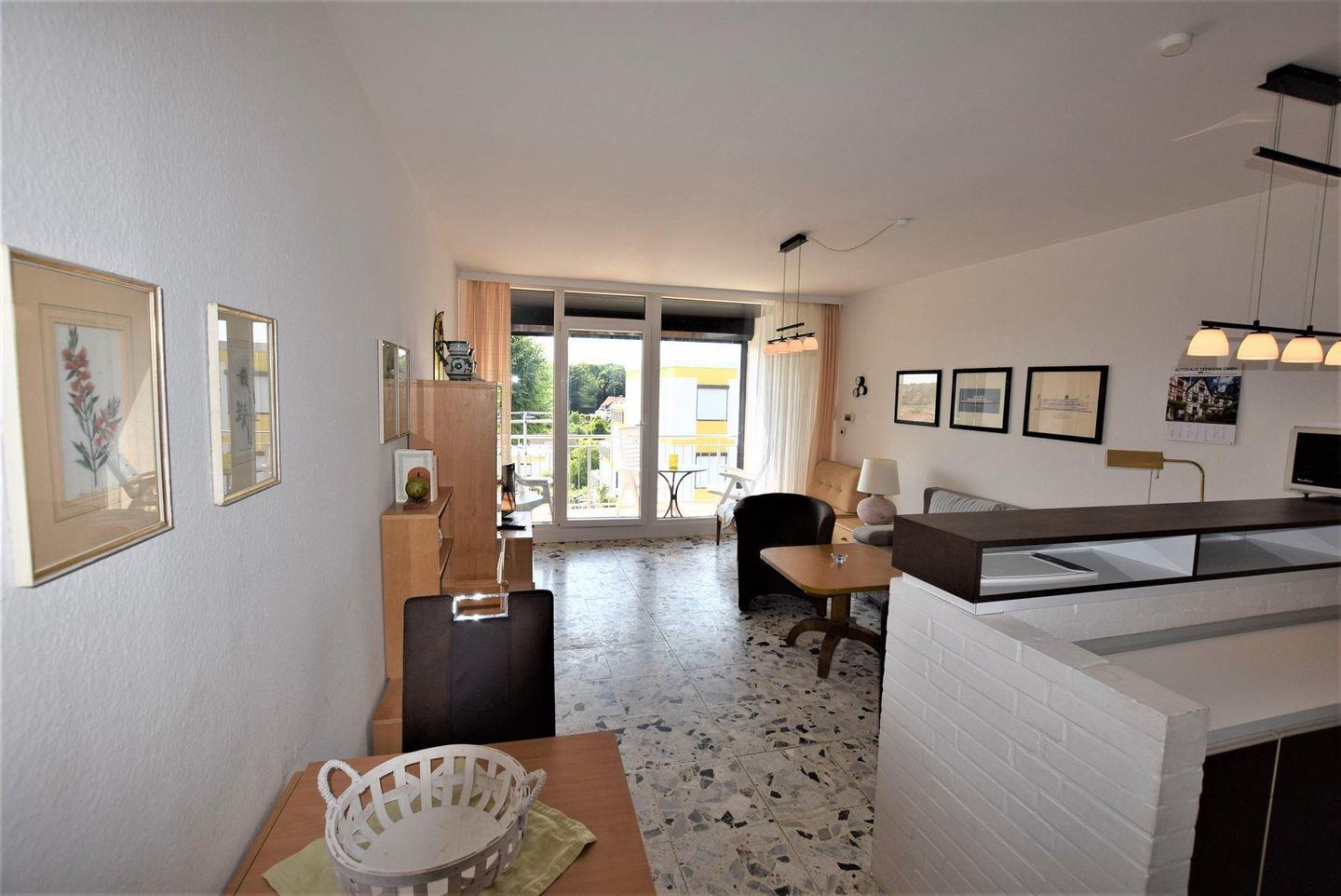 Wohn-Esszimmer mit gemütlicher Couchecke ( Schlafcouch für 2 Personen), Esstisch sowie Kabel TV