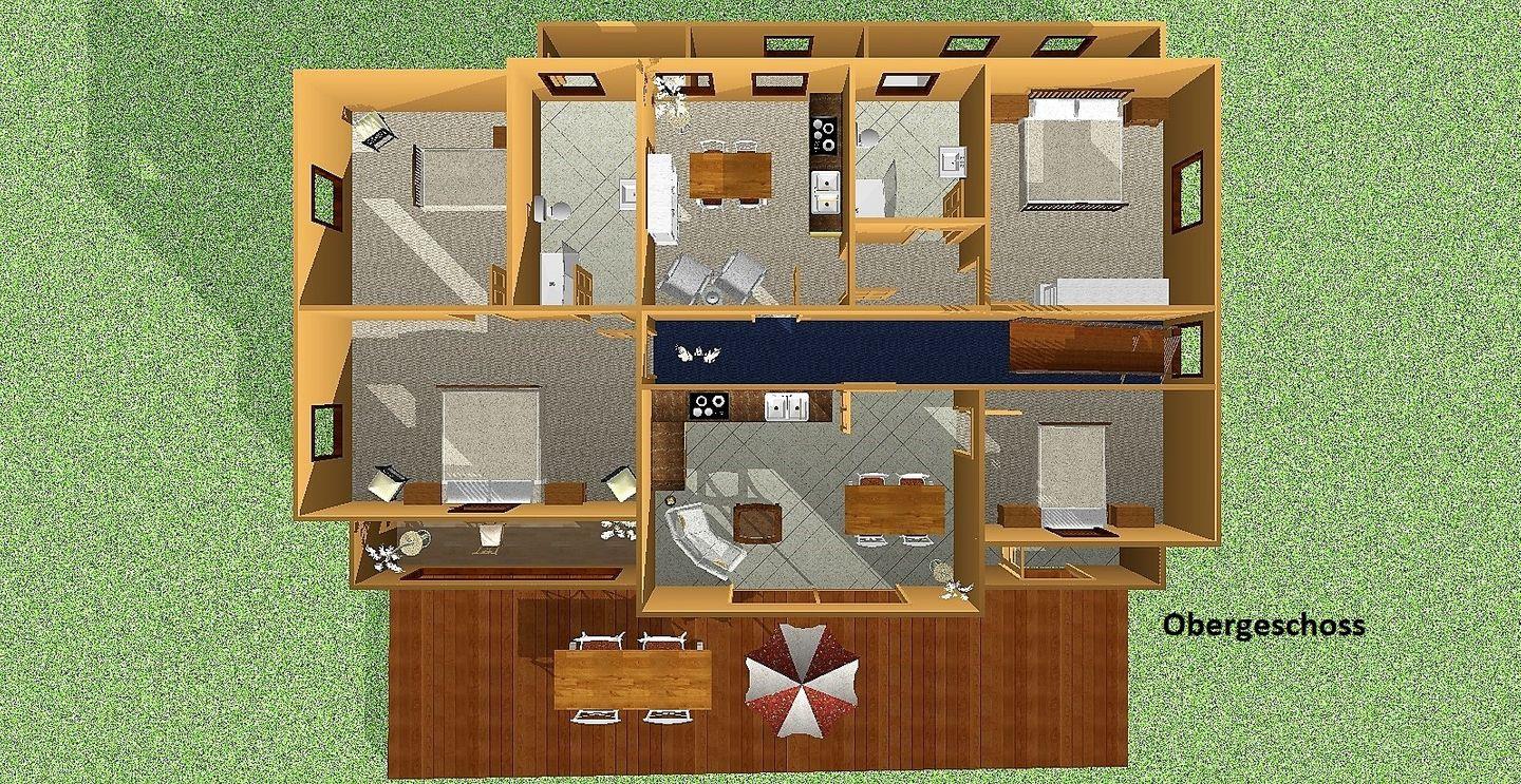 Das Haus eignet sich ideal für Familien und größere Gruppen, da man im Obergeschoss des Hauses 2 vollkommen ausgestattete Ferienwohnungen vorfindet.