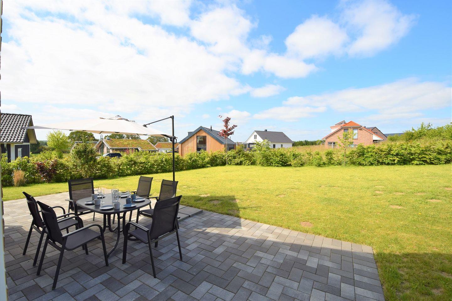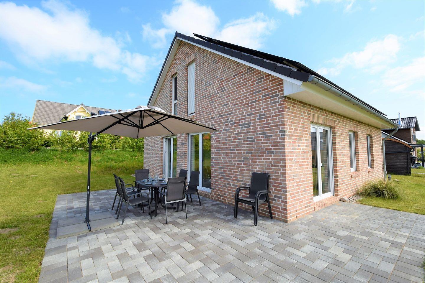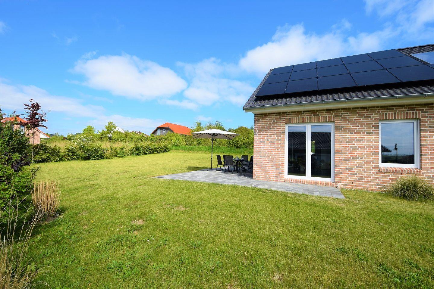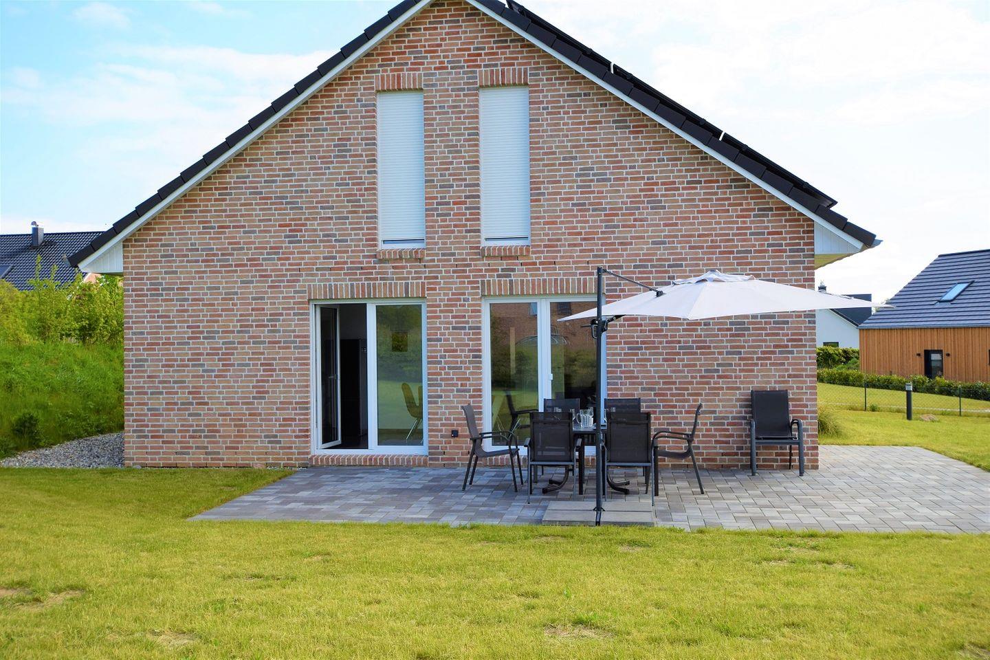 Modernes Ferienhaus Birkholm mit 4 Schlafzimmern, Terrasse, Wallbox und idyllischem Garten an der Hohwachter Bucht.