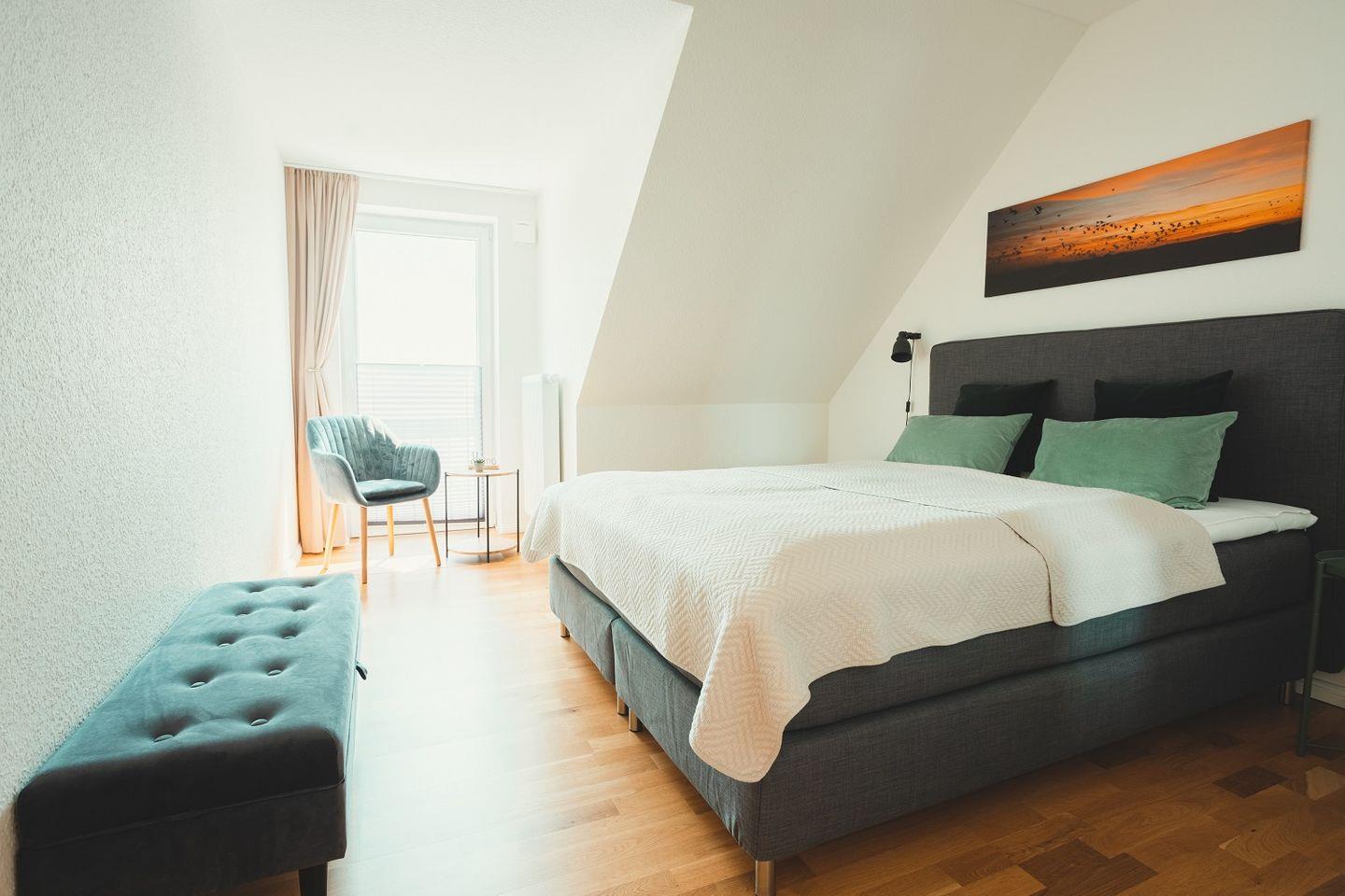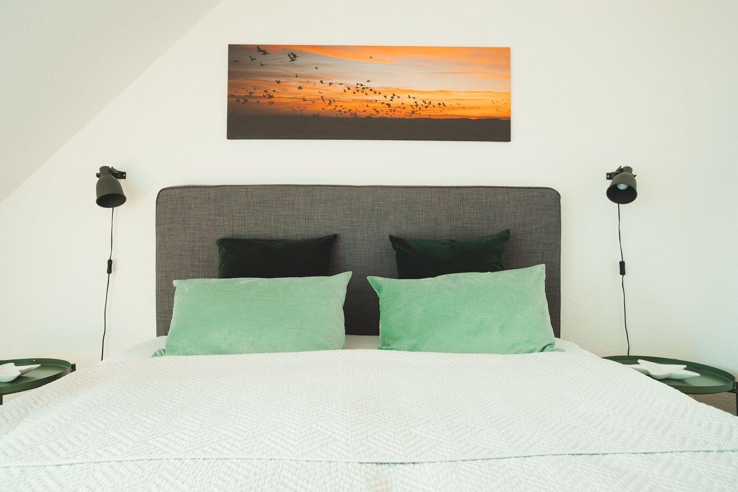 Insgesamt 2 Schlafzimmer bieten den Gästen dieser Unterkunft reichlich nächtlichen Komfort. Ein Schlafzimmer ist mit einem komfortablen Boxspringbett und mit Staumöglichkeiten in Form eines Kleiderschranks ausgestattet. Das Boxspringbett bietet mit 160 X 200 und offenen Fußenden viel Platz für gemütliche und erholsame Nächte. Das zweite Schlafzimmer verfügt über ein gemütliches Einzelbett 90x200 und ein auch für Erwachsene geeignetes Etagenbett 90X200. Auch hier wurde an Stauflächen gedacht, so dass das eigene Gepäck in diesem Ferienhaus bequem untergebracht werden kann.