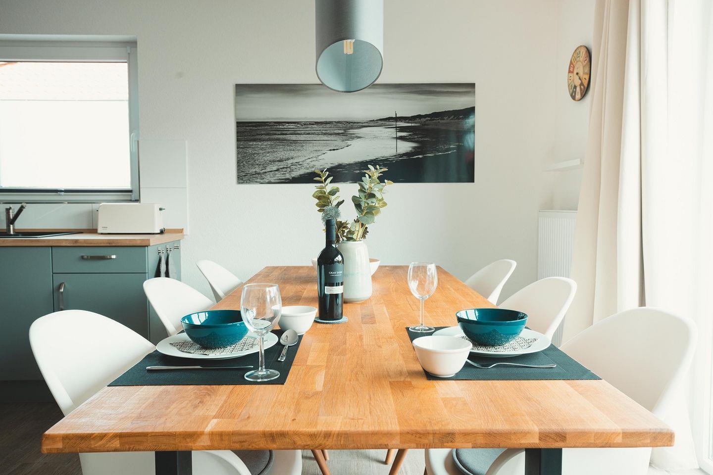 Das 2019 fertiggestellte Ferienhaus "Ostseehus Hohwacht" bietet auf ca. 90 qm Platz für bis zu 7 Gäste. In dem großen Wohnbereich mit Zugang zur Terrasse fällt viel Tageslicht. Sowohl der Wohnbereich mit Sitzgarnitur und großem Flachbildfernseher als auch der Essbereich sind besonders großzügig angelegt.