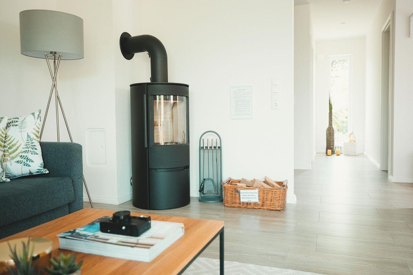 Der große Esstisch ist wie geschaffen für gemeinsame Mahlzeiten und fröhliche Spieleabende. Das bequeme Sofa kann ausgeklappt werden und bietet 2 zusätzliche Schlafmöglichkeiten. Ein Kaminofen sorgt für wohlige Wärme.