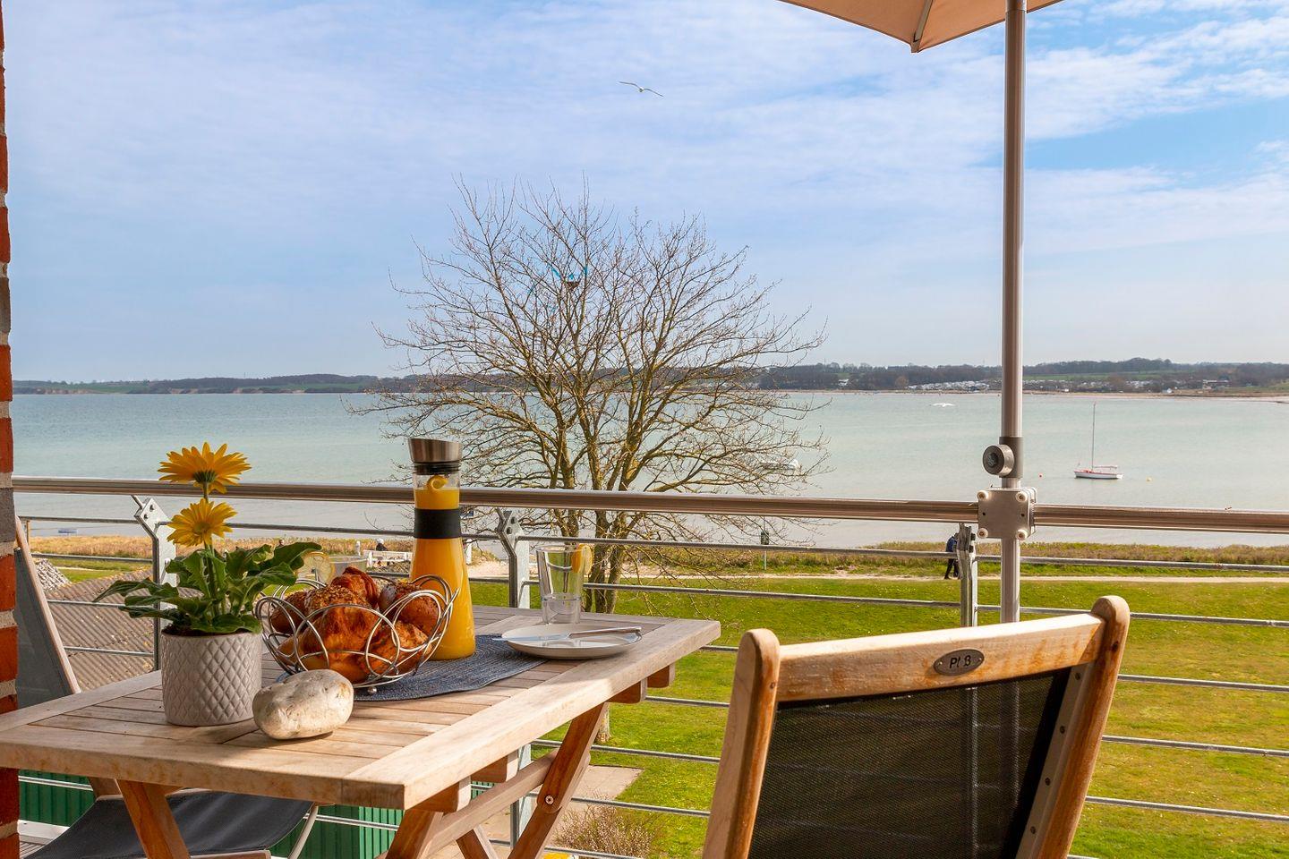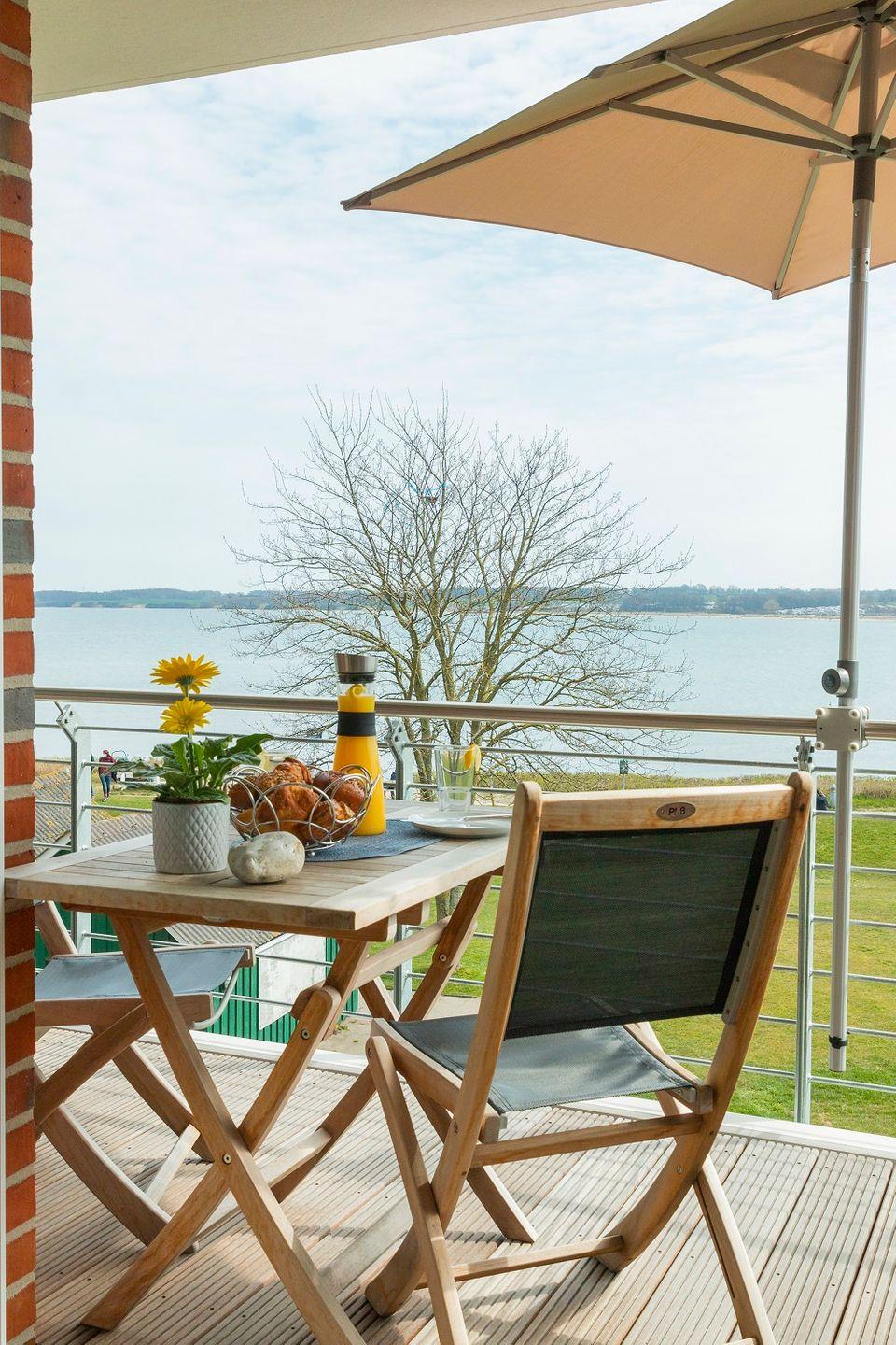 Direkt vom Wohnraum aus kann der schöne Balkon der Wohnung betreten werden. Hier kann nicht nur die Aussicht auf die mal ruhige, mal schäumende See genossen werden, sondern auch ein fantastischer Panoramablick . Durch seine Lage bietet der Außenbereich pünktlich zum Frühstück Sonne, die sich den ganzen Tag über hält.