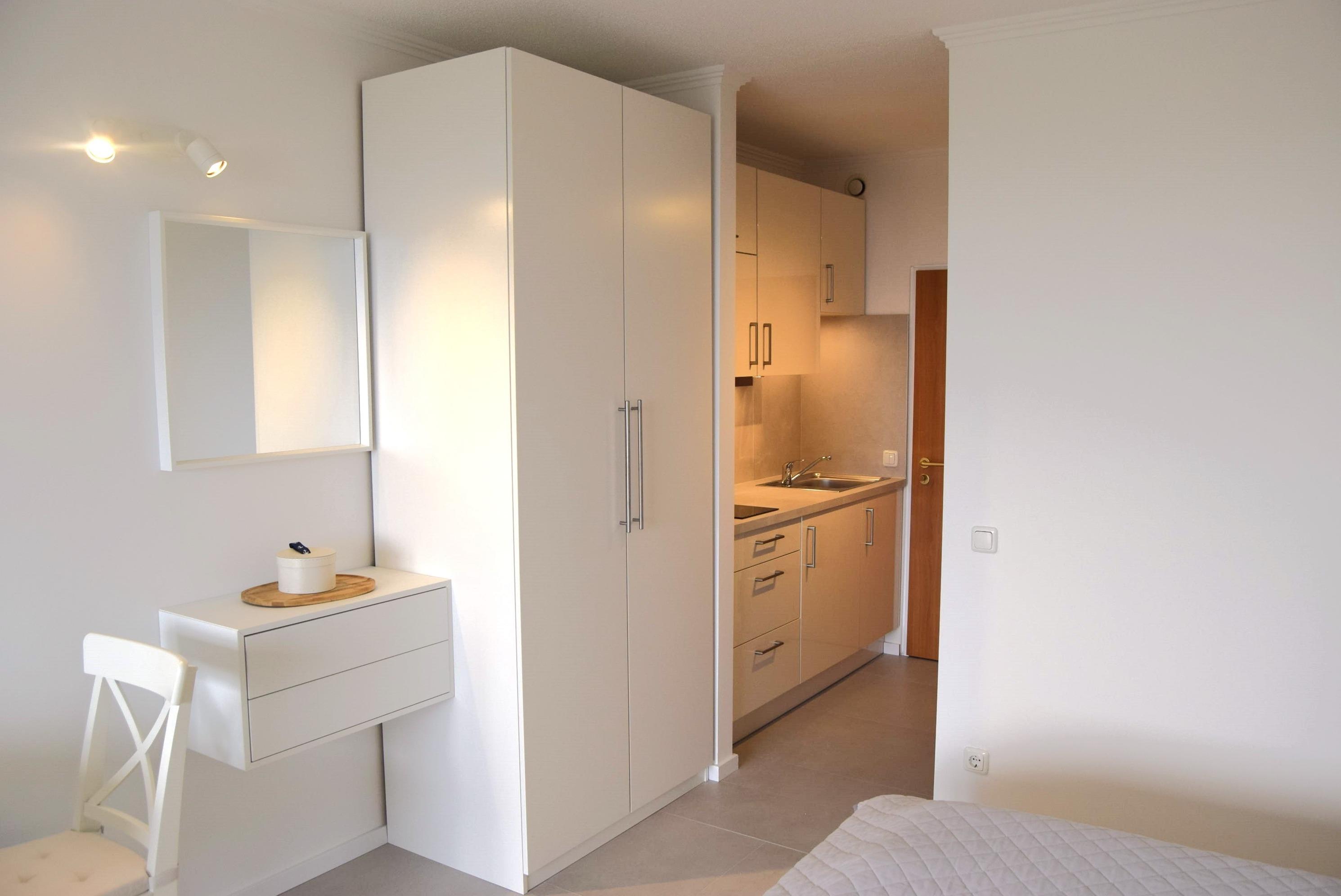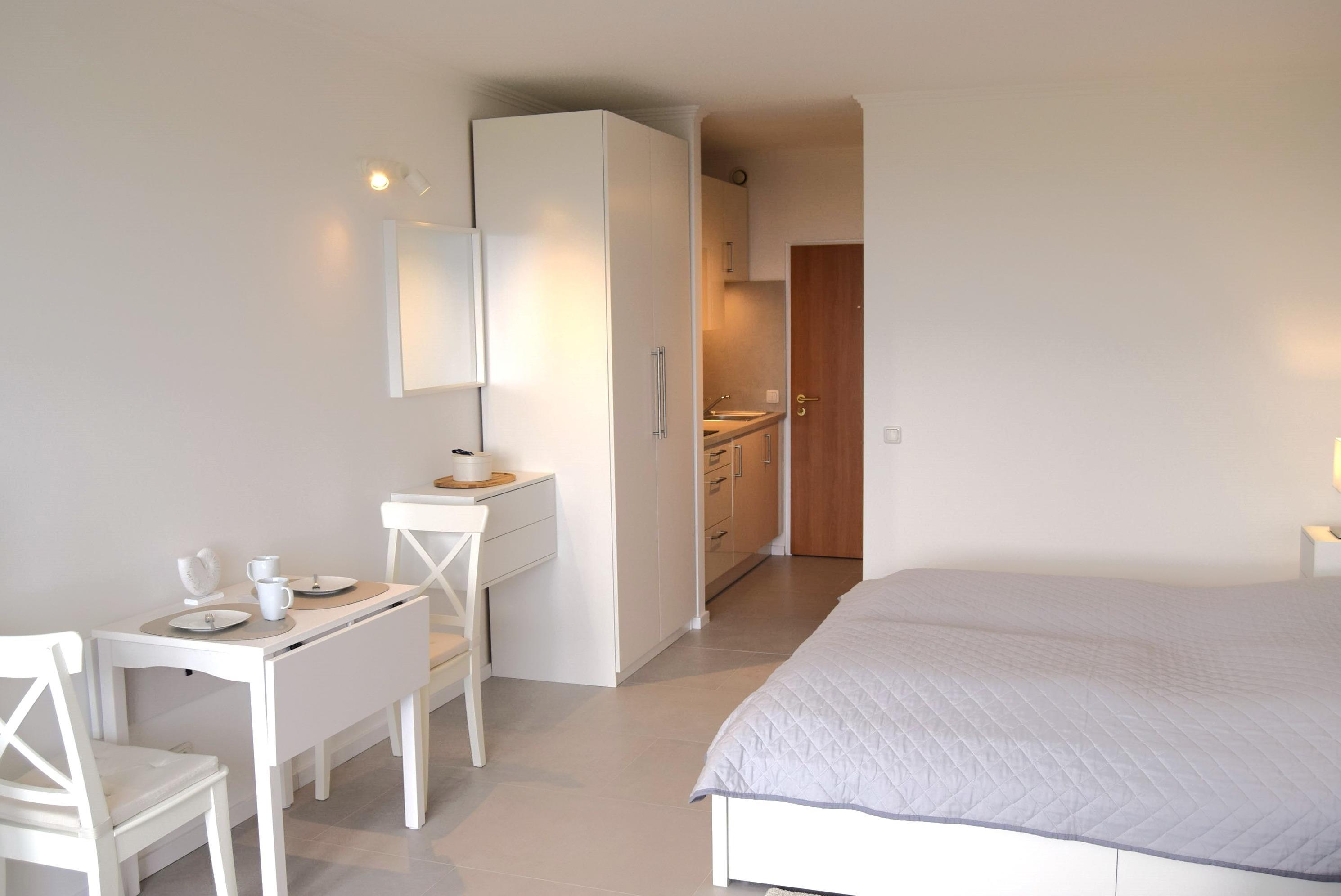 Das Ferienappartement verfügt über viel Komfort, wie einen kombinierten Wohn-/Schlafbereich mit Doppelbett und separater Couch, einer modernen Pantry-Küche sowie ein Duschbad.