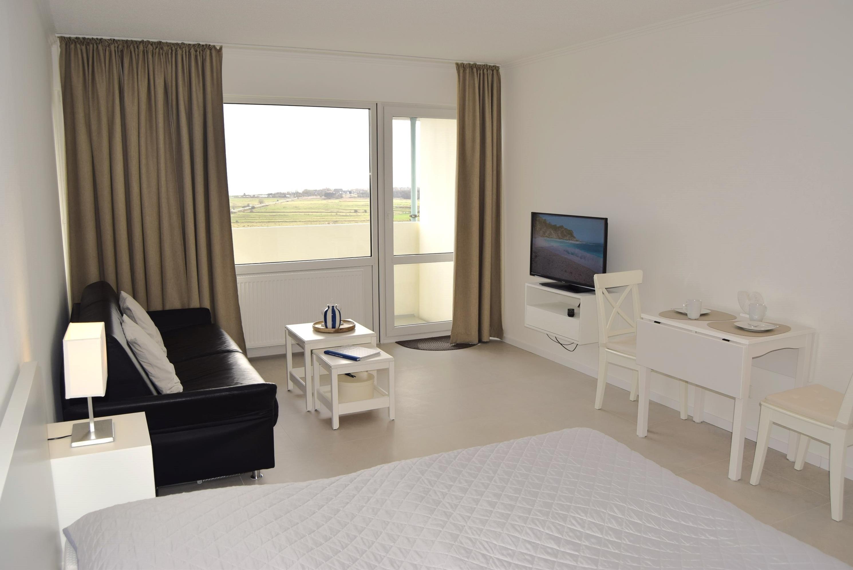 Das modernisierte "Appartement mit Weitblick" befindet sich in der 15. Etage. Genießen Sie beim Frühstück und klarem Wetter einen wunderschönen Weitblick über Kalifornien, den Schönberger Strand bis hin zur Fehmarn-Sund-Brücke.