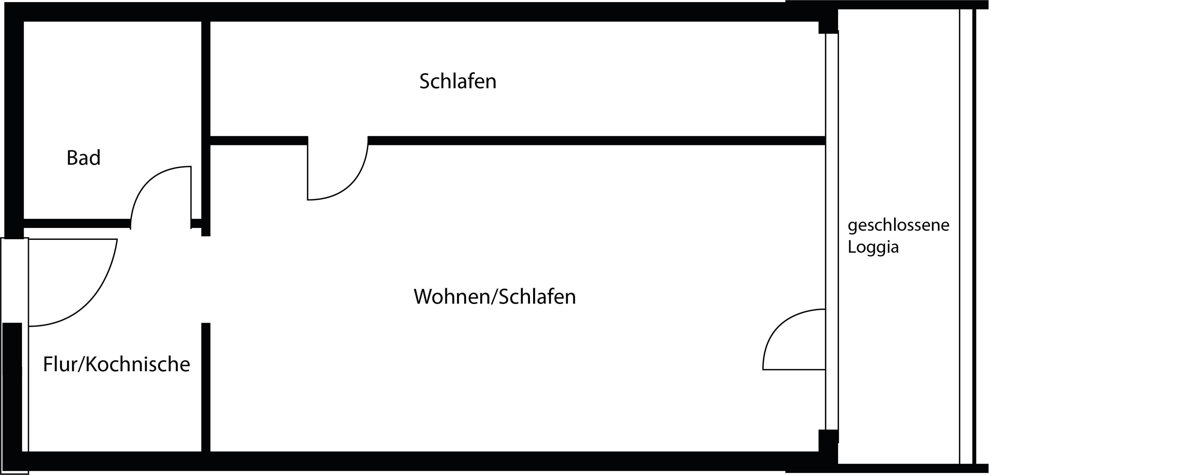 Des Weiteren verfügt das Appartement über ein geräumiges Bad (4,8 qm) mit Toilette, Waschbecken, Duschkabine sowie Zentralheizung und Fön.