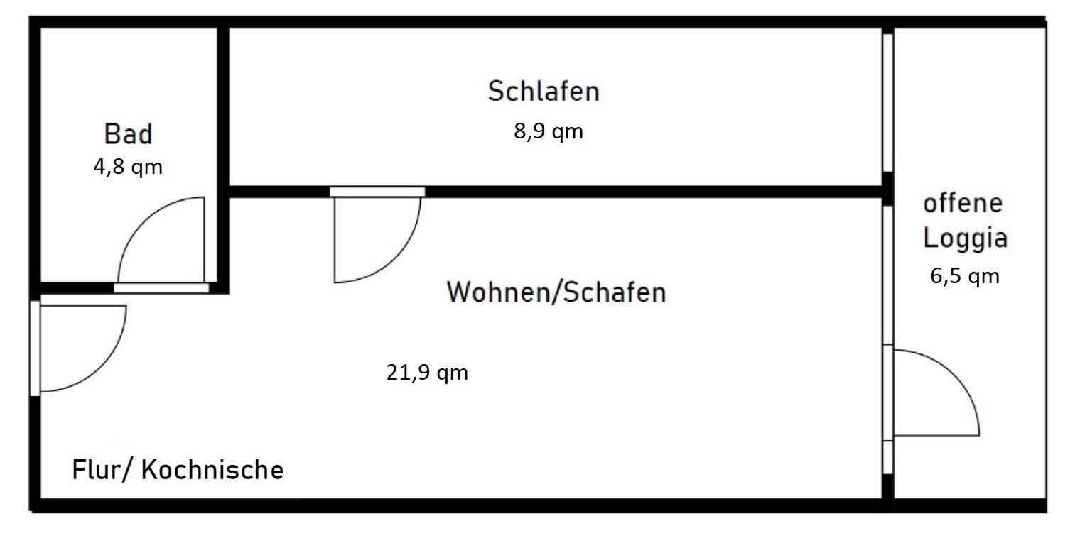 - Wohn-/Schlafzimmer, 28 m², 2 Personen