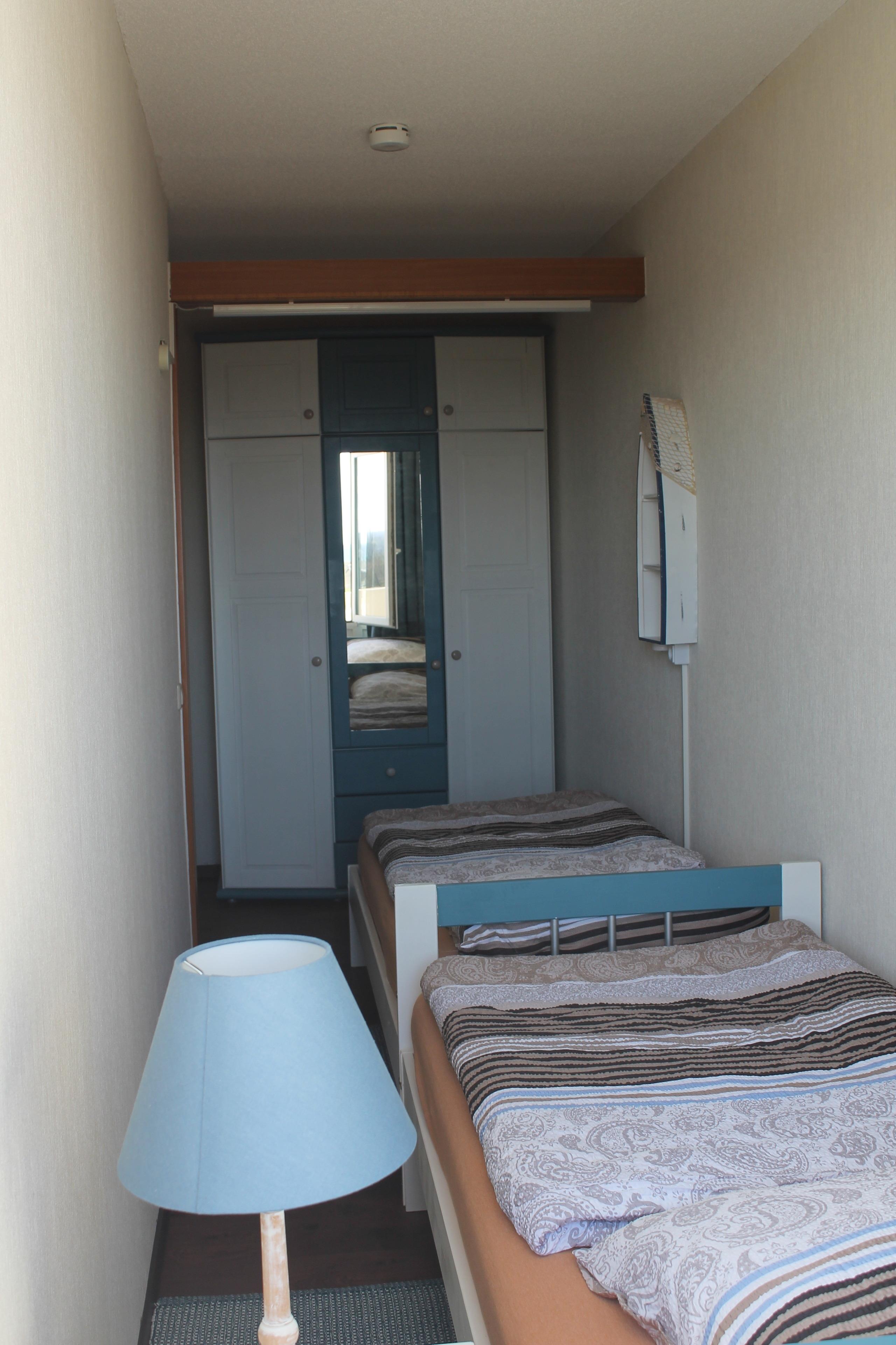 Im separaten Schlafzimmer befinden sich 2 Einzelbetten mit Nachttisch, ein Kleiderschrank mit Spiegel und Schubladen, sowie Unterbettkommoden. Für das mitgebrachte Reisegepäck ist somit ausreichend Platz vorhanden.