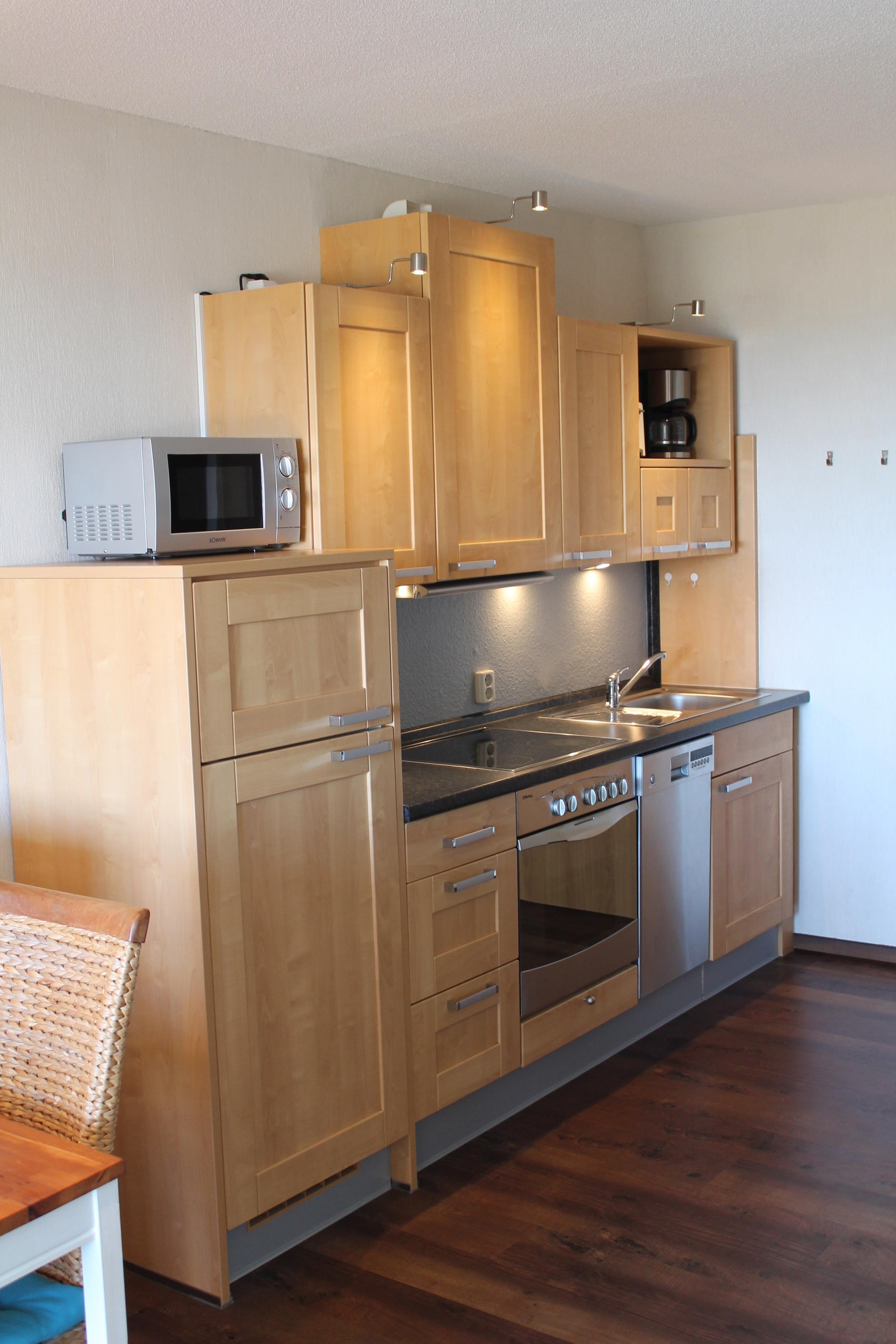 Die voll ausgestattete Küche verfügt über einen Herd mit 4 Cerankochfeldern und Backofen, Kühlschrank mit separatem Gefrierfach, Spülmaschine sowie eine Mikrowelle, Wasserkocher, Kaffeemaschine, Toaster, Eierkocher usw.
