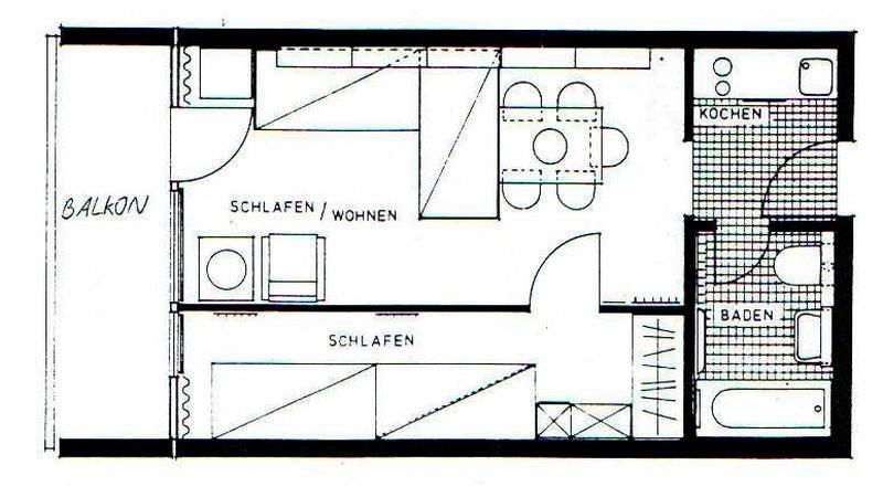 2 Zimmer mit 38m² für max. 4 Personen erwarten Sie hier. Das im 3. Stock gelegene Appartement verfügt über einen zur Ostseite ausgerichteten Balkon.