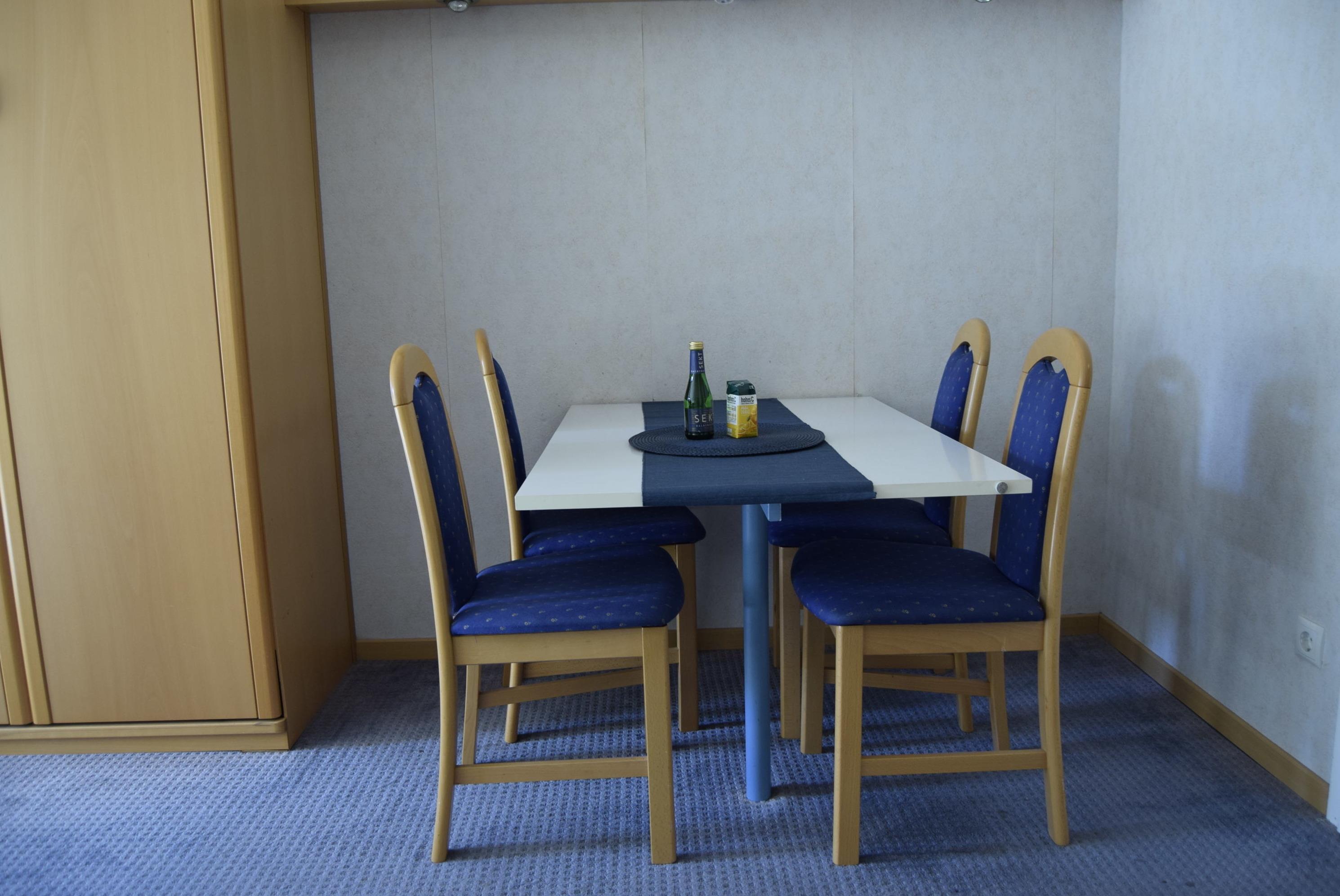Im Schlafzimmer befinden sich 2 Einzelbetten (80cm Matratzen-Breite). Der Wohnbereich lädt zum Entspannen ein, dieser kann zugleich durch ein ausklappbares Wandklappbett als Schlafraum genutzt werden. Des Weiteren befindet sich im Wohnbereich ein Esstisch. Das Badezimmer verfügt über eine Dusche und ein WC. Die Wohnung kann bequem über einen Fahrstuhl erreicht werden. Bitte haben Sie Verständnis dafür, dass das Laden von Elektrofahrzeugen über den Hausstrom nicht gestattet ist. Bitte nutzen Sie die Ladesäulen, die Ihnen in der näheren Umgebung zur Verfügung stehen.
