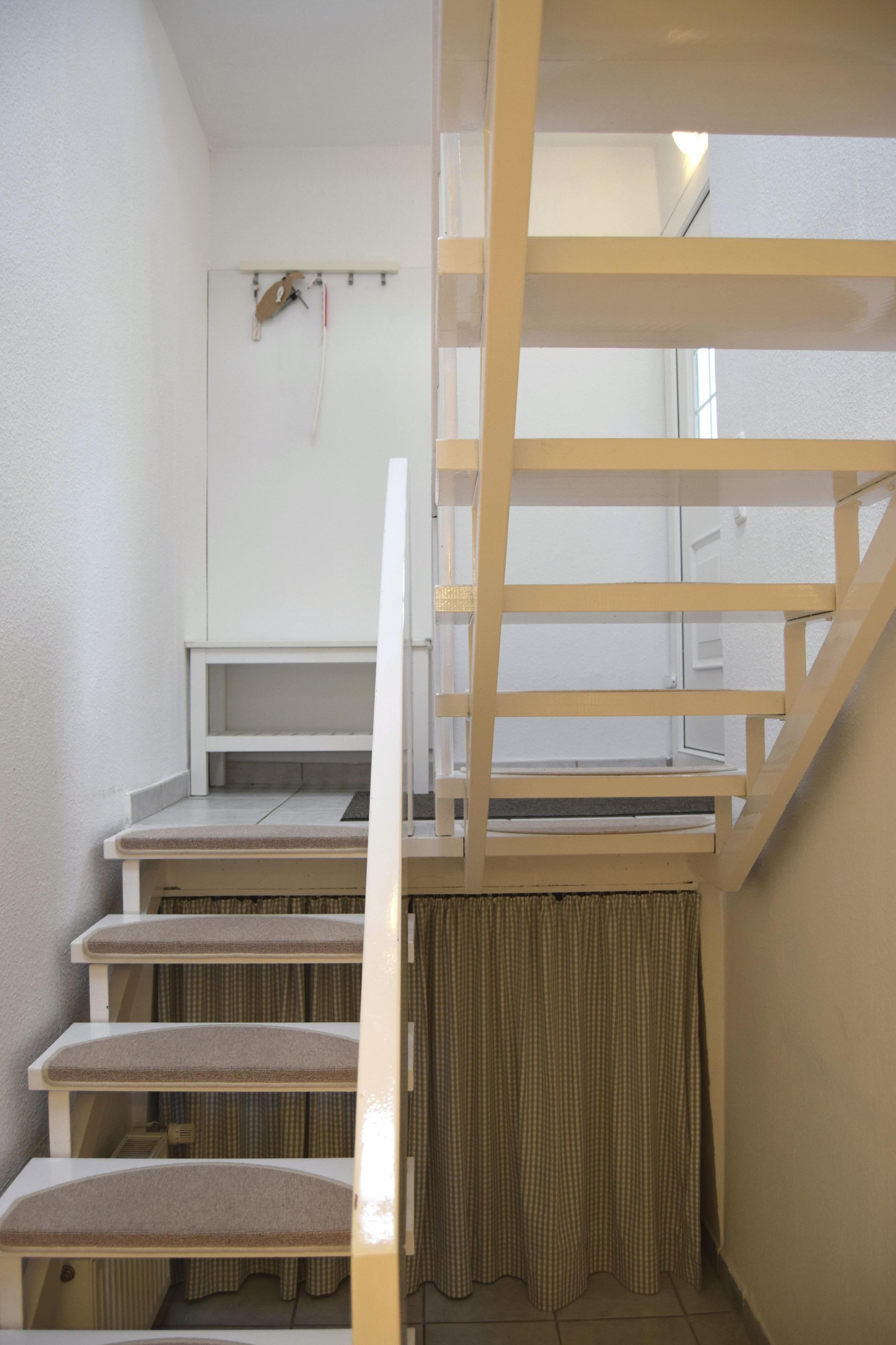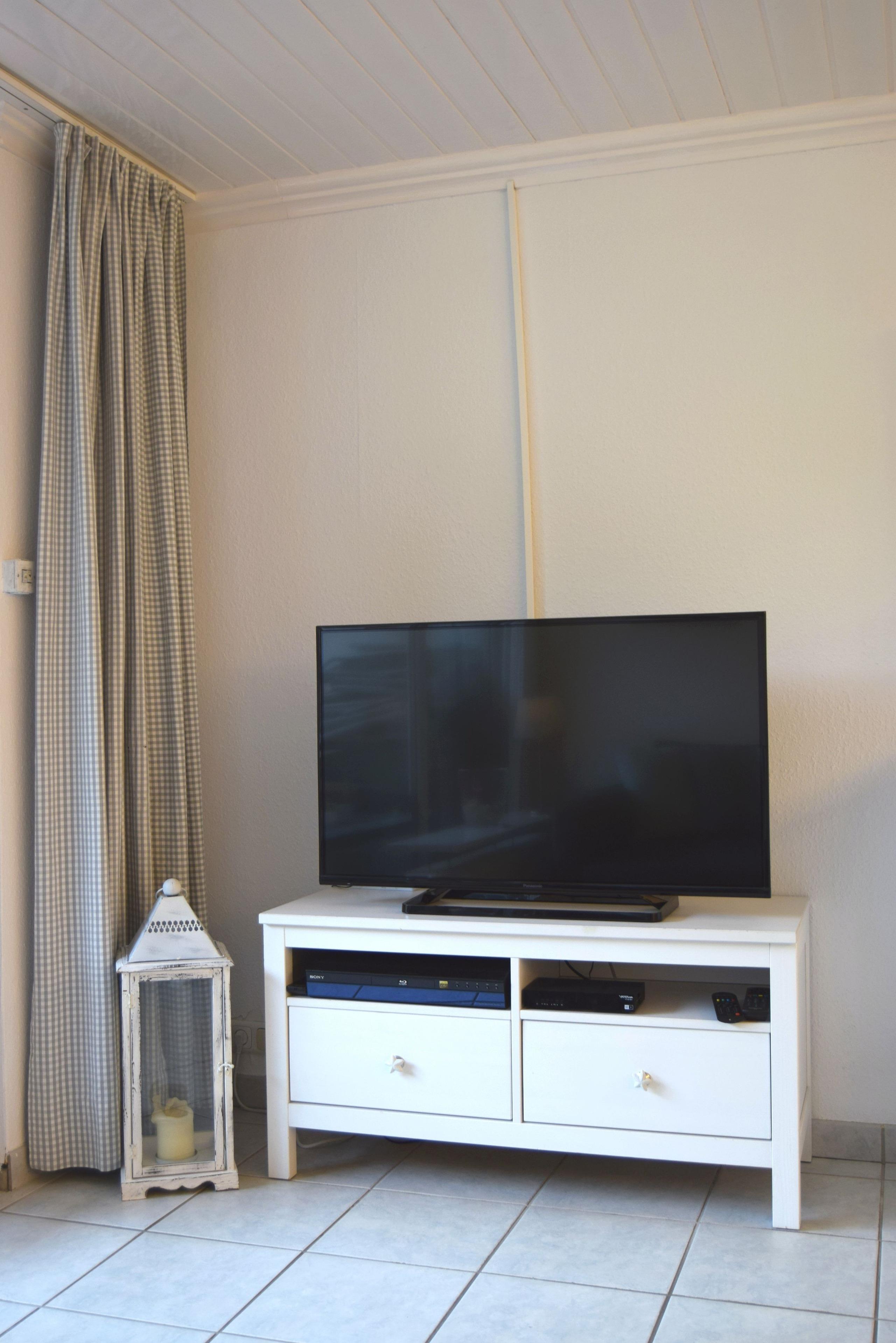 Vom Eingangsbereich gelangt man über ein paar Stufen nach unten auf einen Flur. Von diesem geht eine vollausgestattete Küche (Wasch-, Spül-, Kaffeemaschine, 4-Platten-Herd mit Backofen, Mikrowelle, Wasserkocher, Standmixer, Kühlschrank mit Gefrierfach) und ein lichtdurchflutetes Wohnzimmer mit einem herrlichen Blick in den Garten ab. Das Wohnzimmer ist mit einem Ecksofa (mit Schlaffunktion), einem Flachbildfernsehr, einem DVD-Player, einer Stereoanlage und einer Essecke ausgestattet. Zu den gängigen Stühlen sind ein Baby- sowie ein Kinderhochstuhl vorhanden.