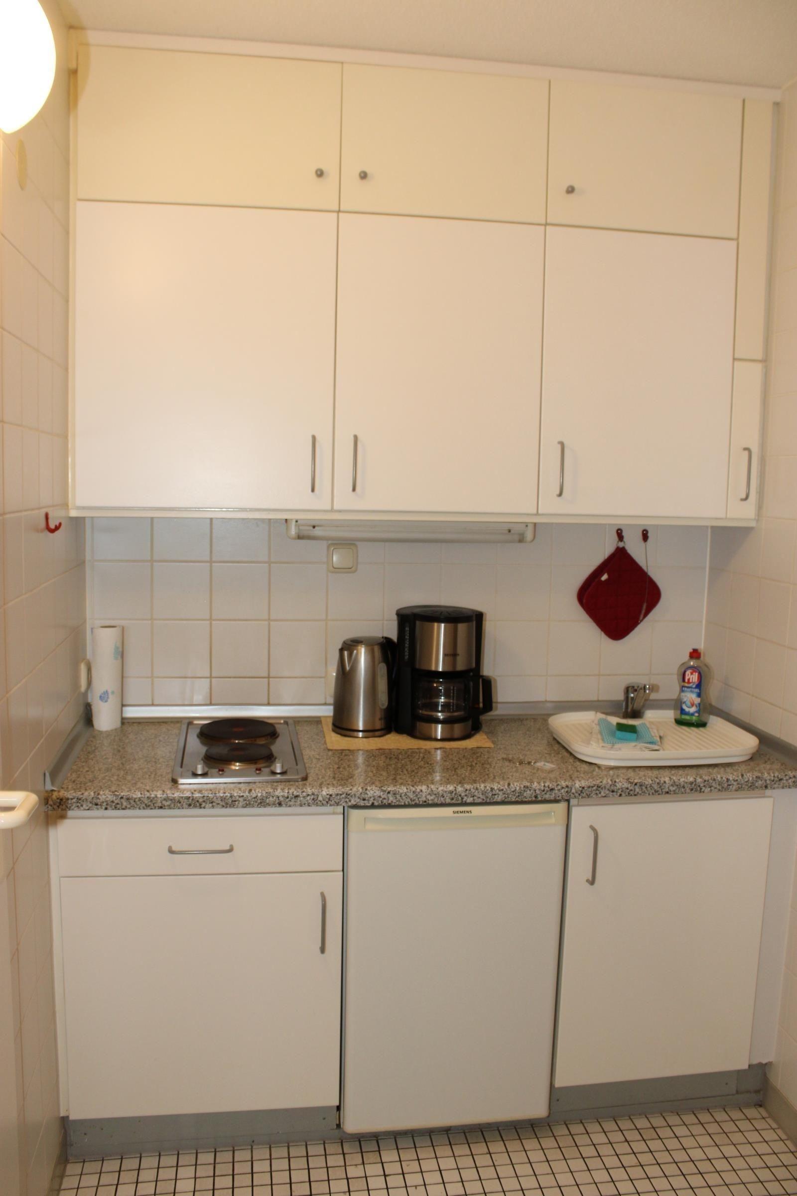 Die Küche ist komplett ausgestattet und bietet alles, was unsere Gäste zur Selbstversorgung benötigen. Das Bad ist mit Dusche ausgestattet.