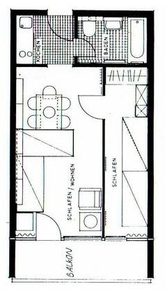 Das Quartier verfügt über ein helles Wohnzimmer, ein Schlafzimmer (8,8 m²), ein Badezimmer (4,8 m²), einen Flur mit integrierter Küchenzeile und einen Balkon.