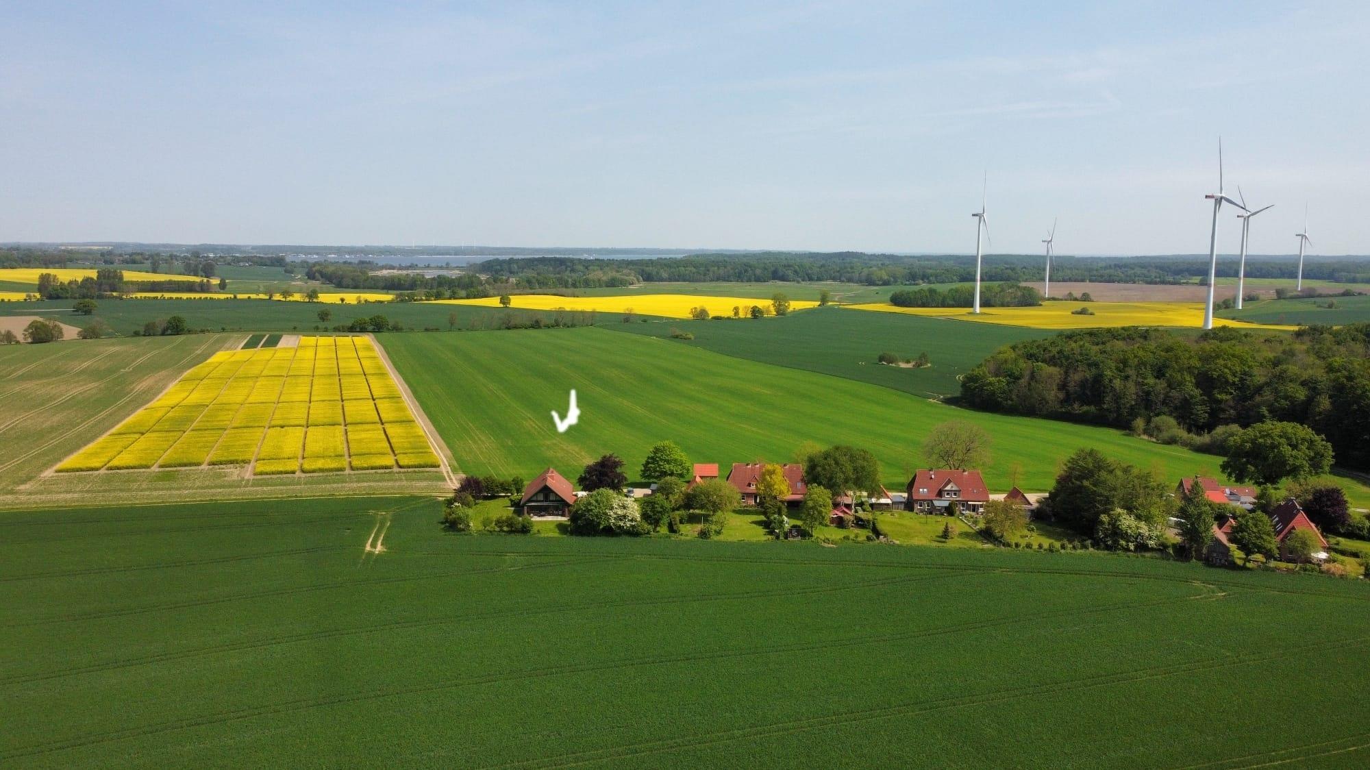 Ein großzügiger Garten und die Terasse laden zum verweilen ein. Hier sind sie alleine und haben Ihre Ruhe. Vielleicht fährt mal eine Traktor vorbei. Von allen Räumen haben sie einen direkten Blick über die Felder bis zur Ostsee.