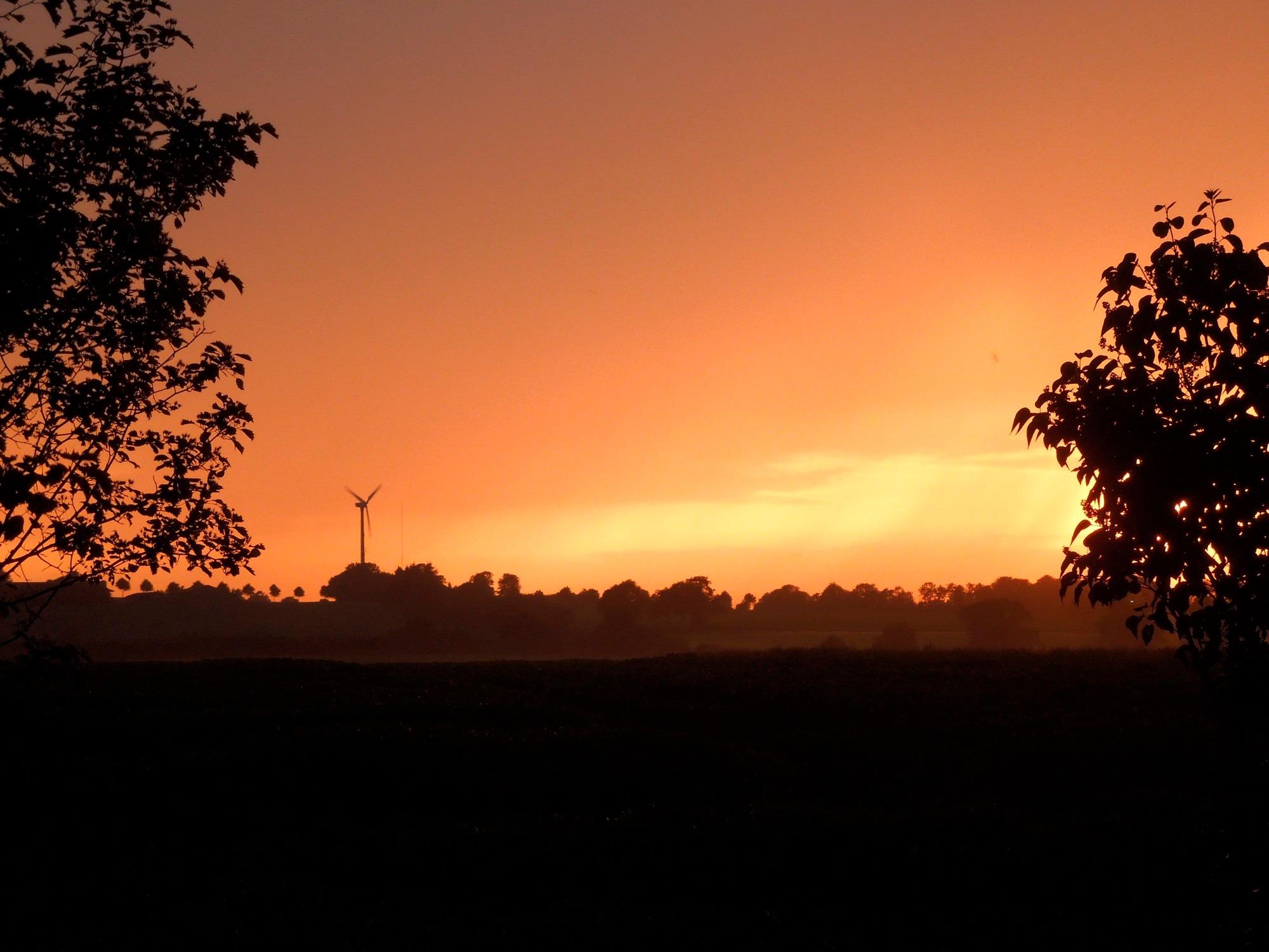 Das Haus liegt am Ende einer kleinen Siedlung, die nur von Felden umgeben ist.
