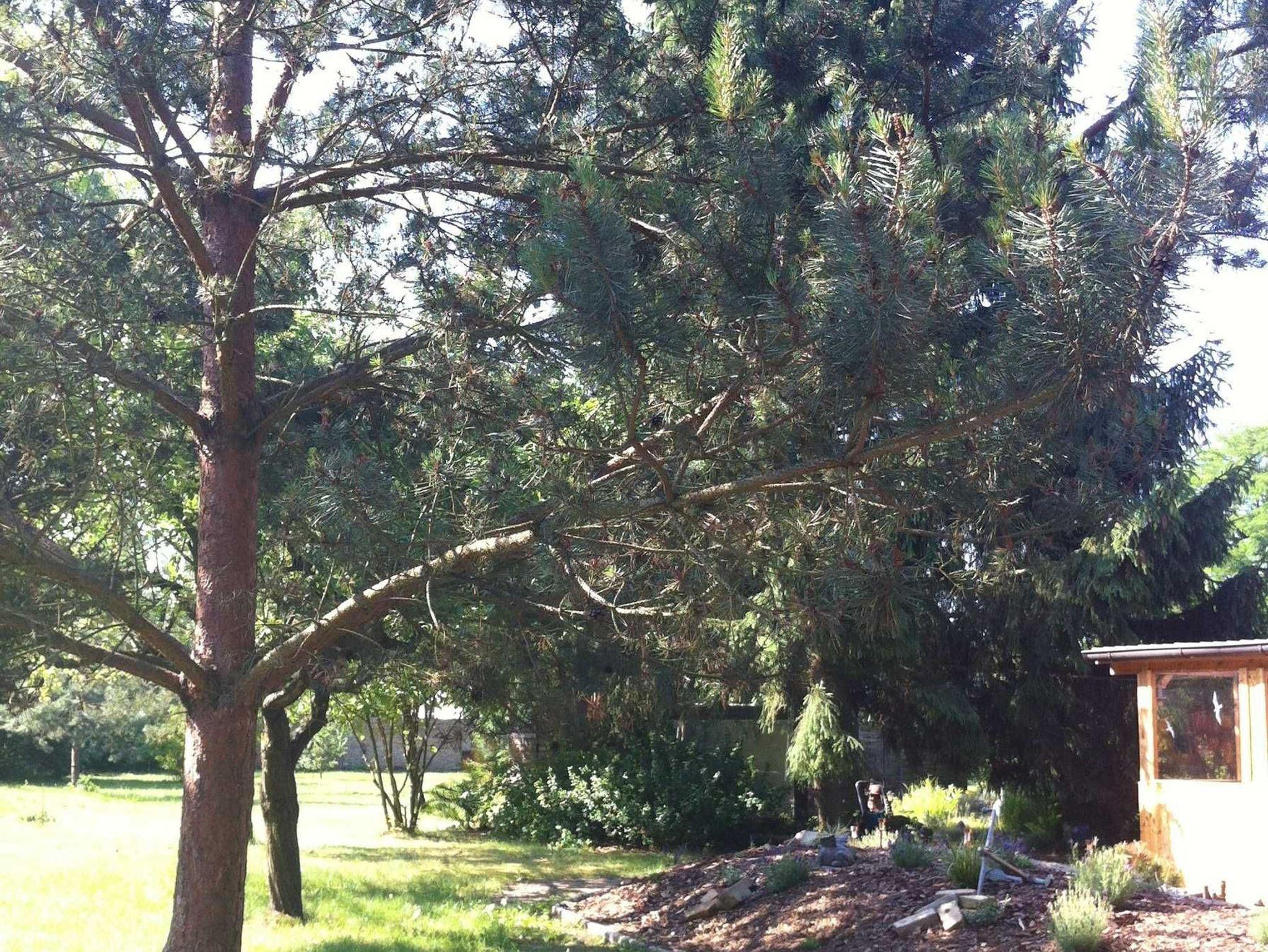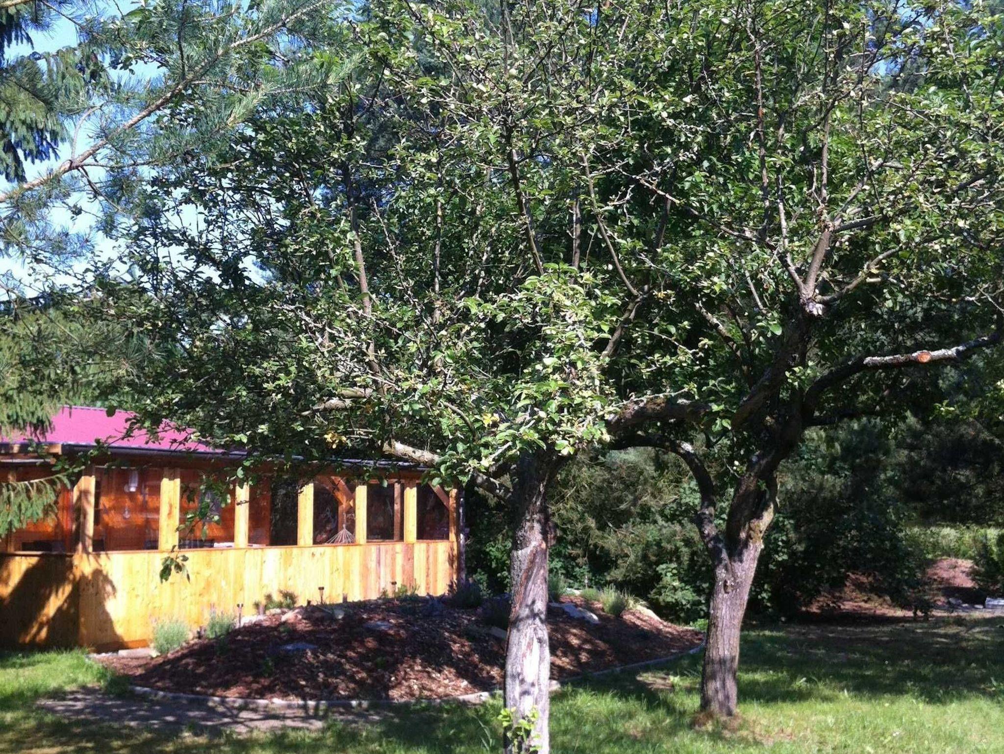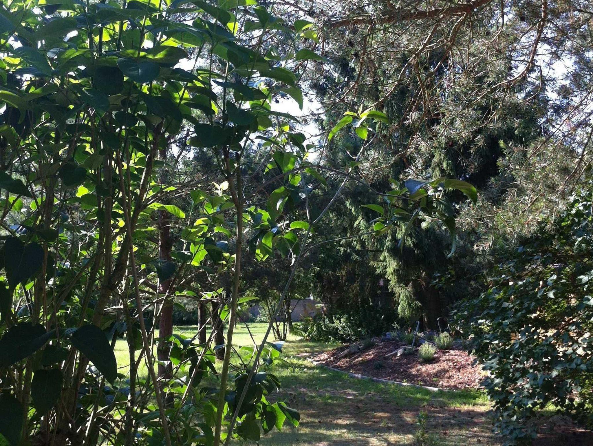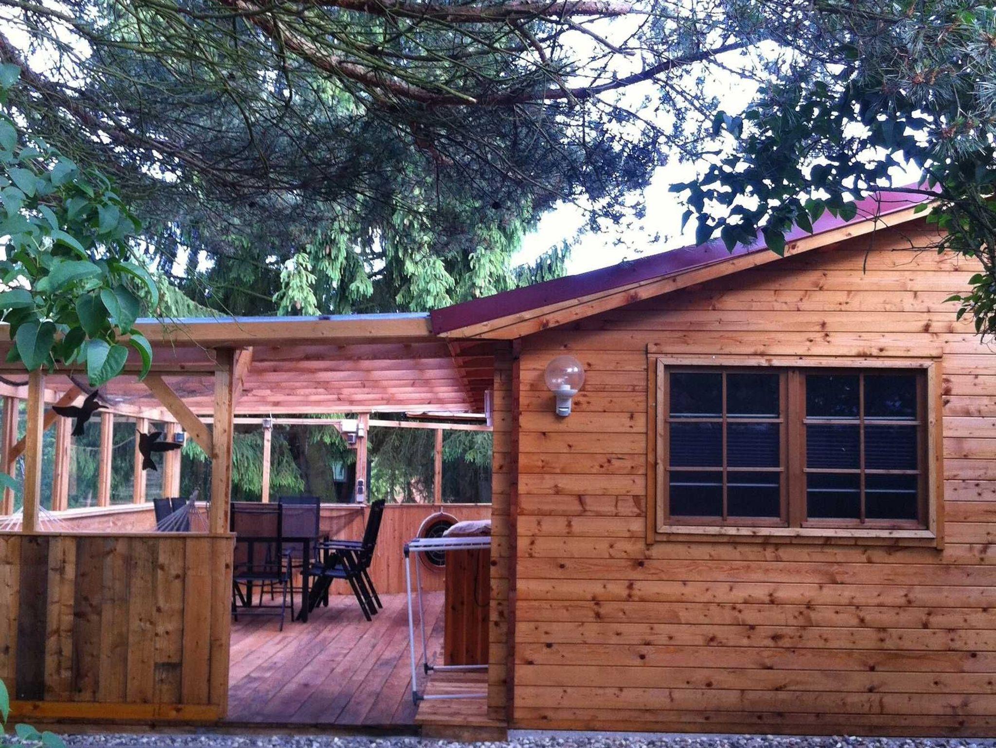 Der Bungalow liegt in der Nähe eines Bahnübergangs idyllisch am Waldrand, in großer gepflegter Gartenanlage (5000 m²), durch Hecken und Gebüsch vom Haupthaus abgegrenzt, in dem der Eigentümer wohnt.
