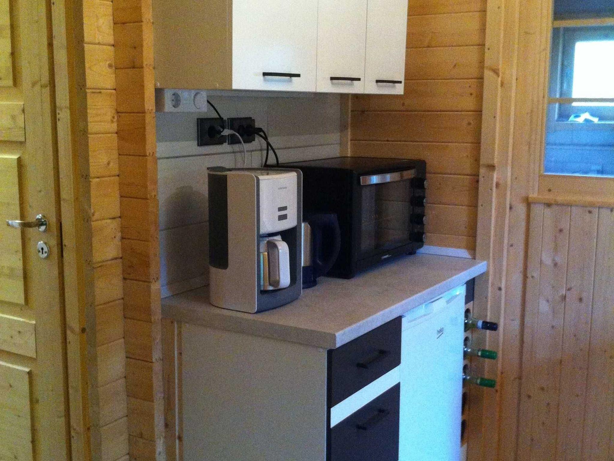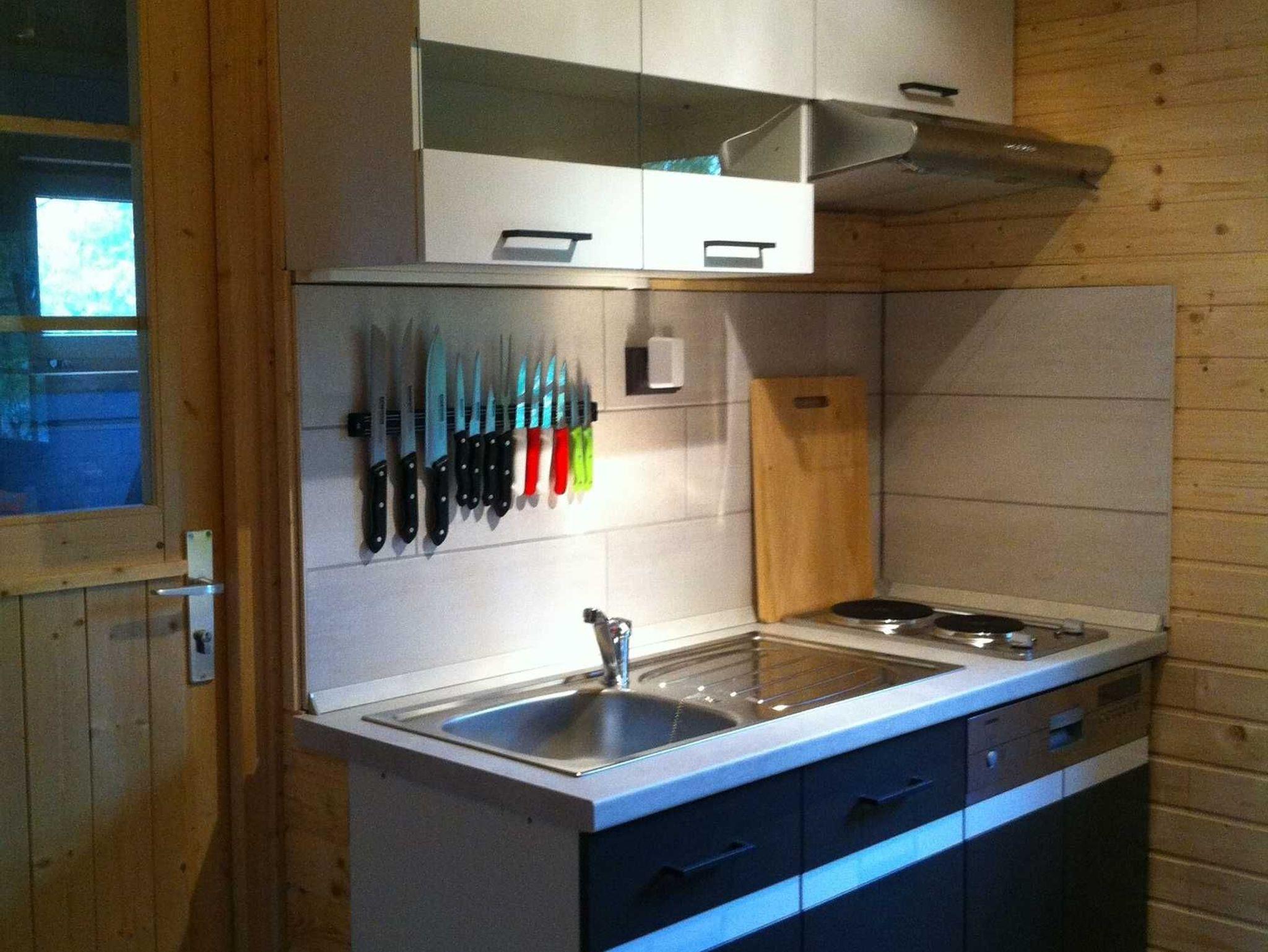 2-Platten-Herd, kleiner Backofen, Toaster, Kaffeemaschine, Wasserkocher, Spülmaschine,