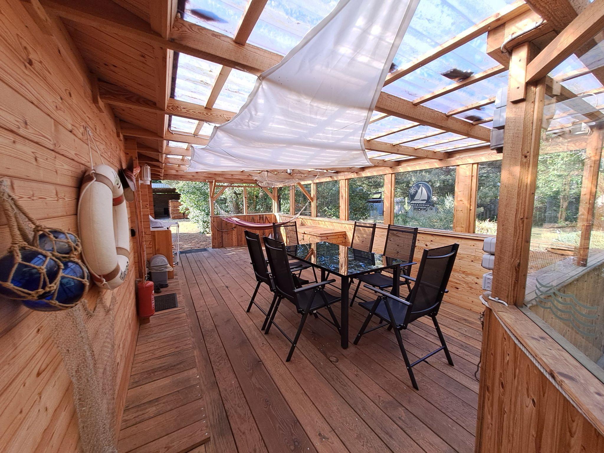 überdachte möblierte Terrasse,