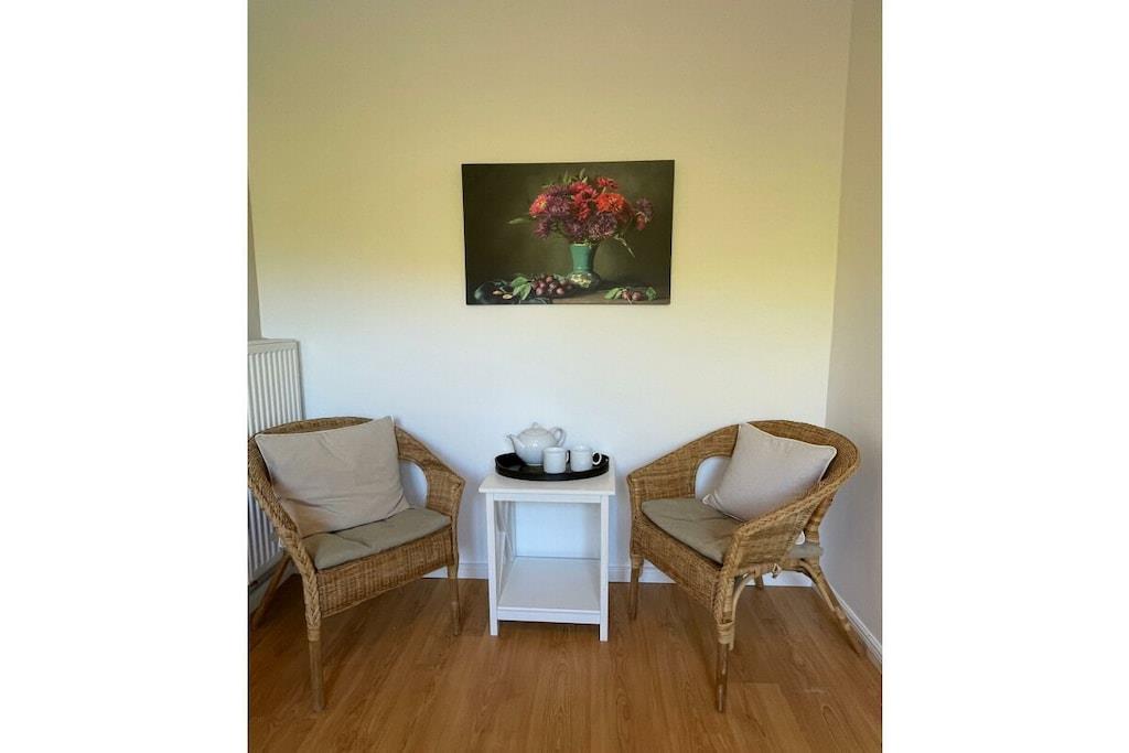 Diese idyllisch gelegene ebenderdige und geschmackvoll eingerichtete Ferienwohnung mit kombinierten Wohn/Esszimmer, komplett ausgestatteter Küche im Landhausstil, 2 gemütlichen Schlafzimmern, einem geräumigen Duschbad und schöner Terrasse ist optimal für 3 Personen. Für eine 4. Person steht ein Klappbett im 2. Schlafzimmer zur Verfügung.