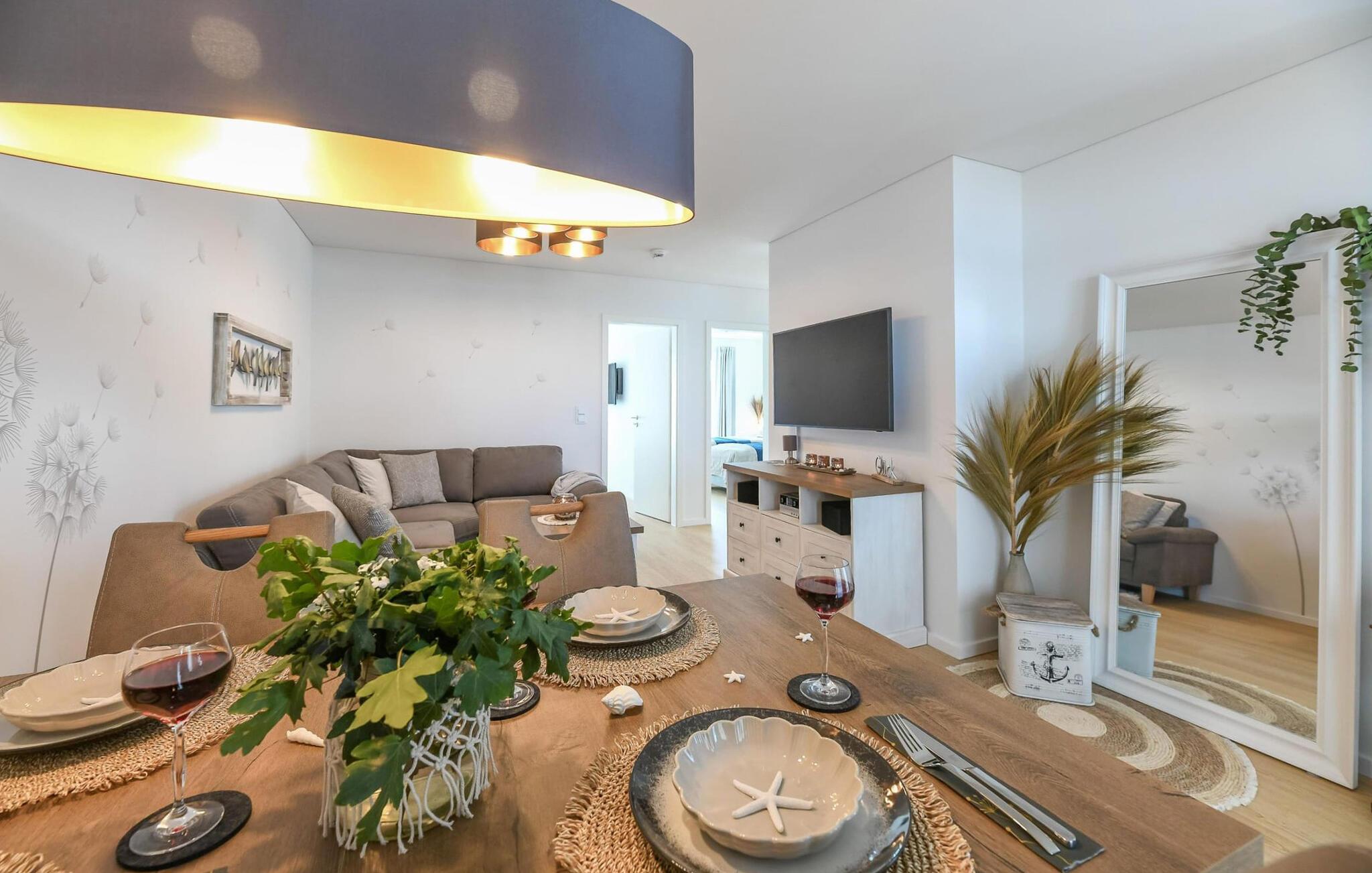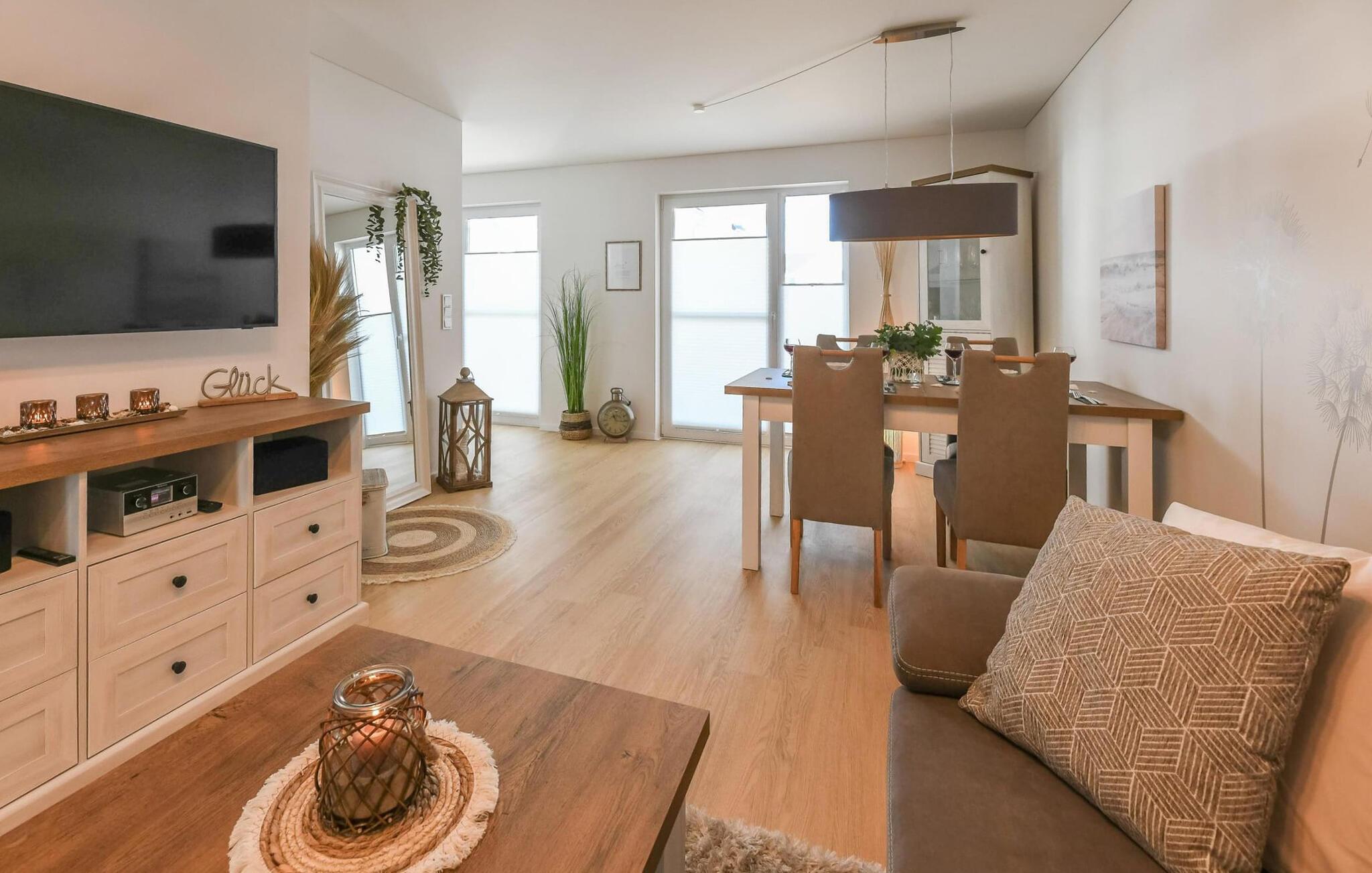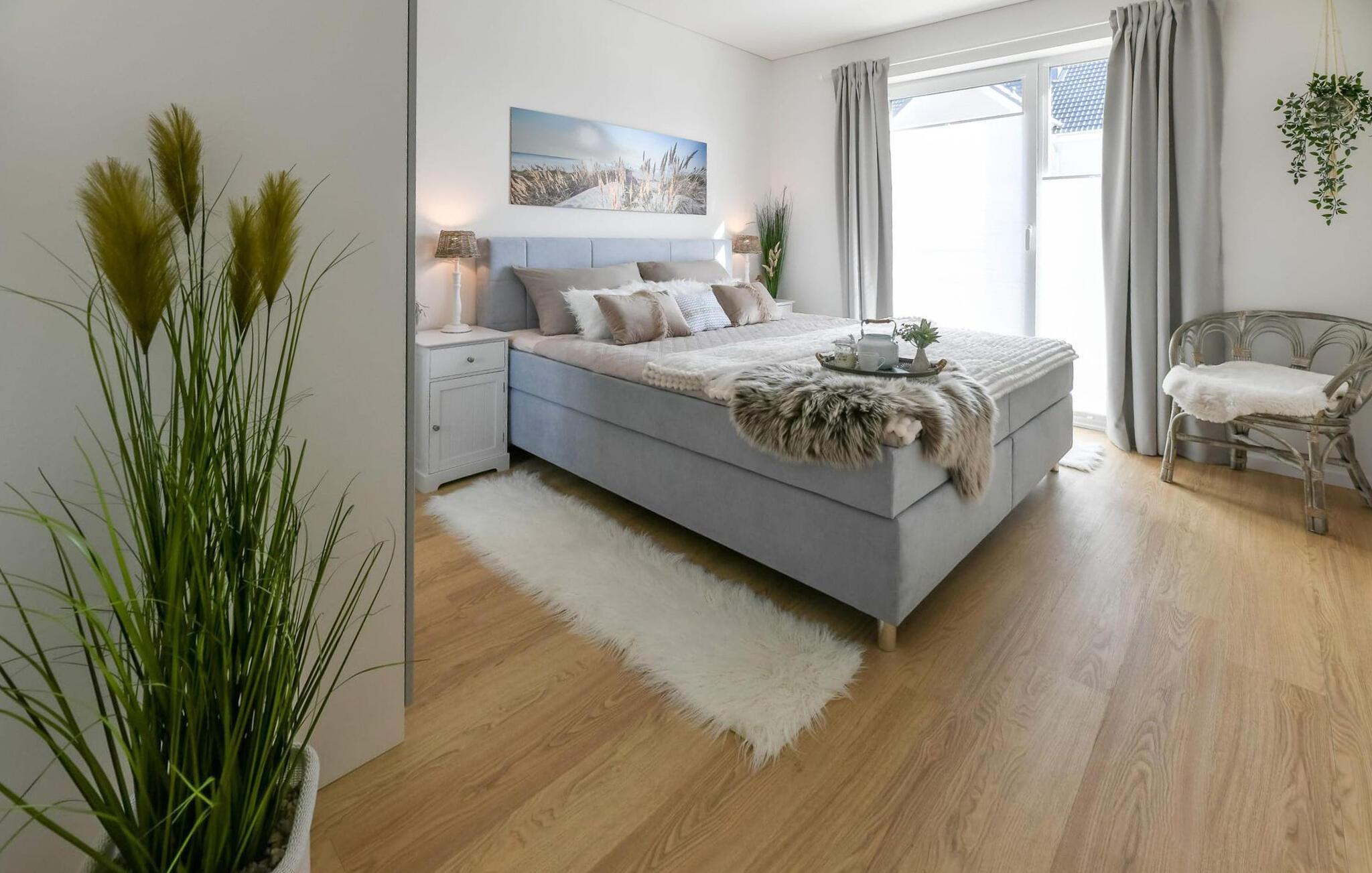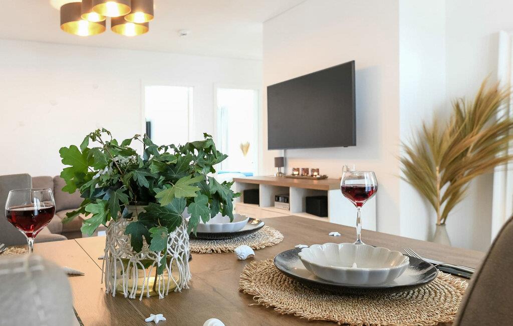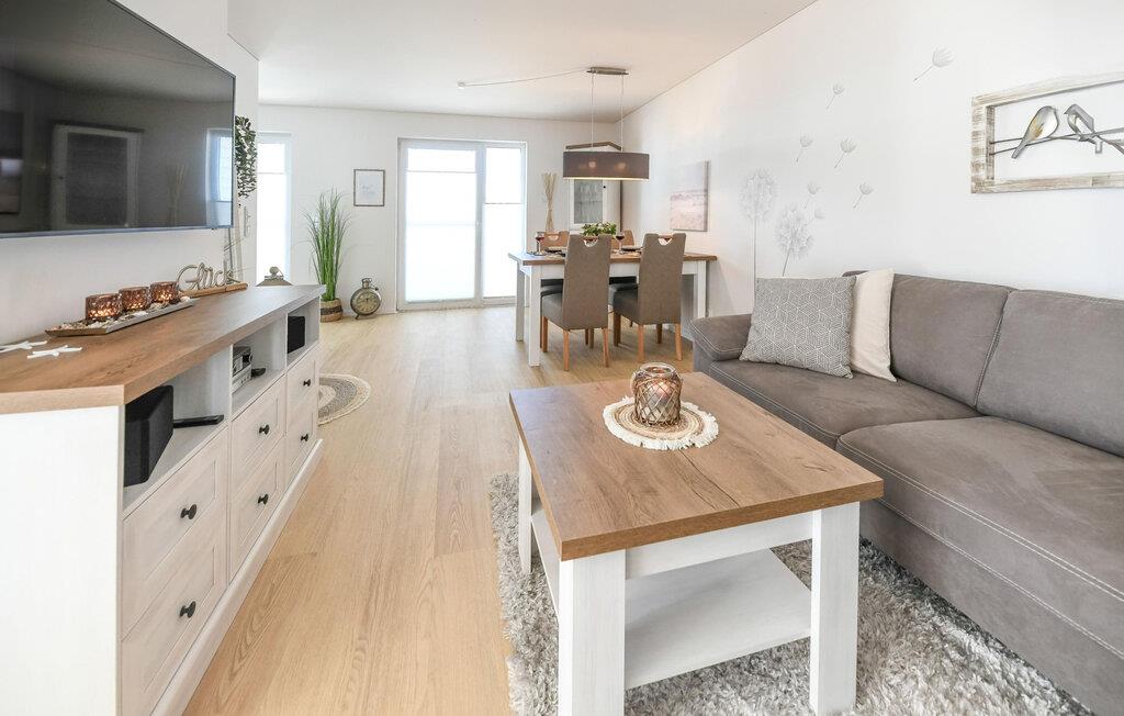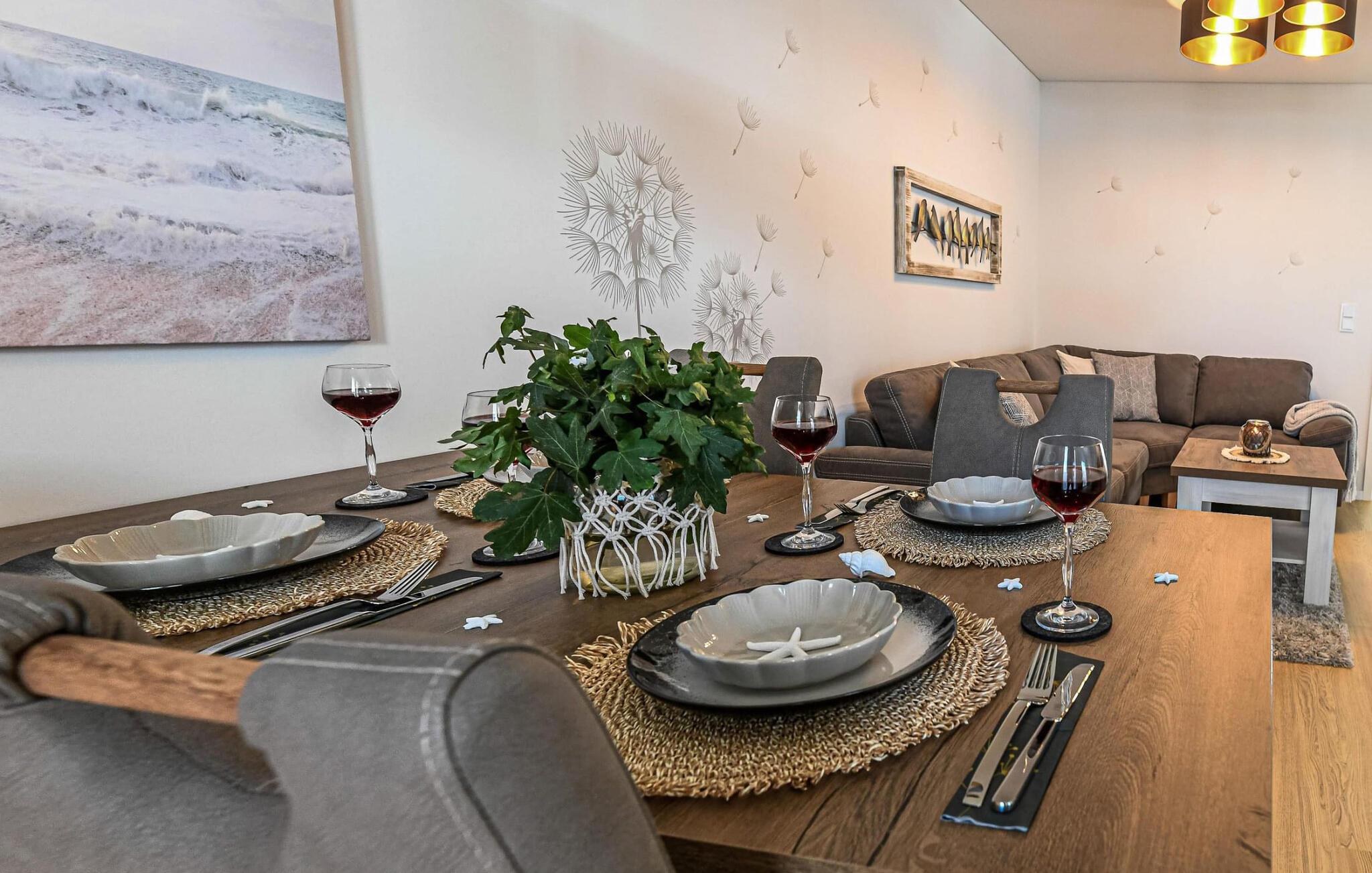 Gemütliche Ferienwohnung Hygge Family im Skandi-Stil nahe Weidefelder Sandstrand und Hafenpromenade.