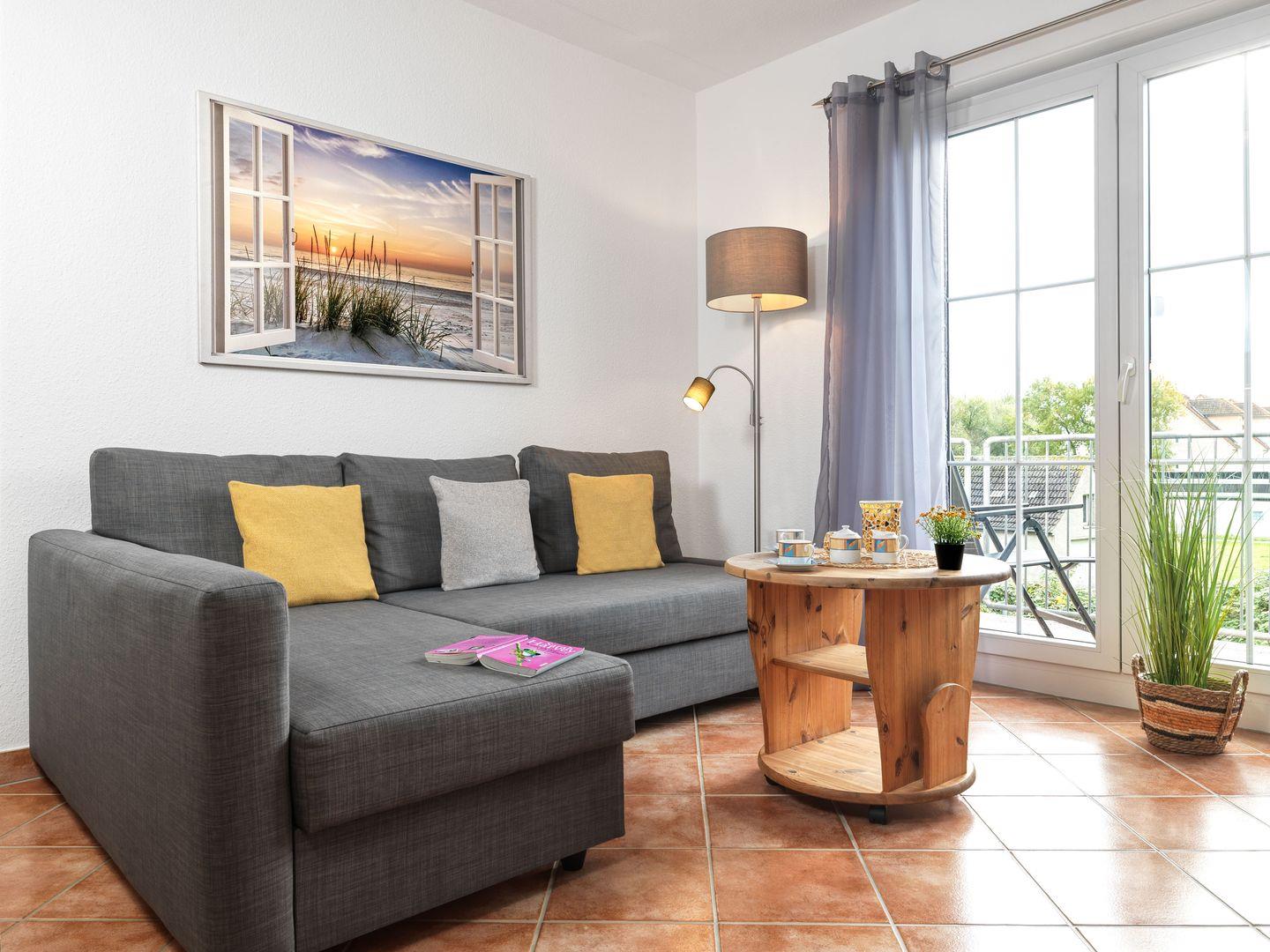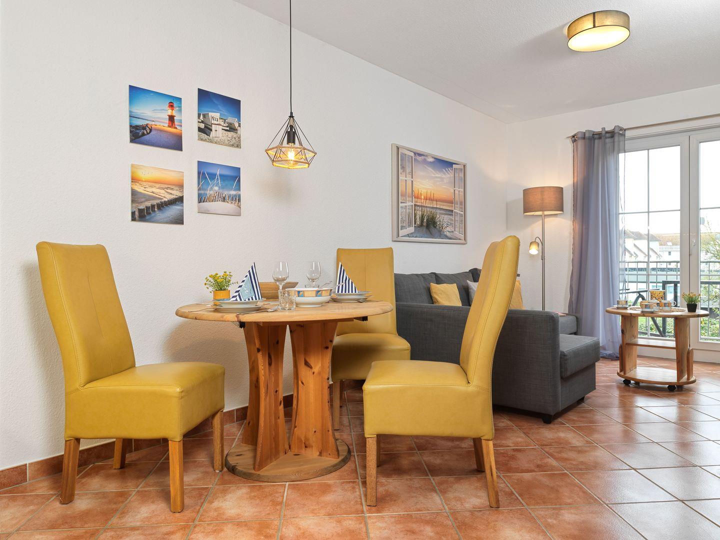 Gemütliche 2-Zimmer-Ferienwohnung in Kirchdorf mit Balkon und seitlichem Hafenblick, 2 km vom Strand entfernt.