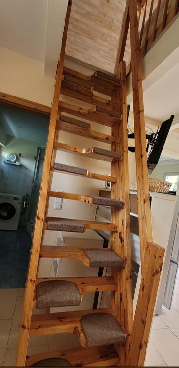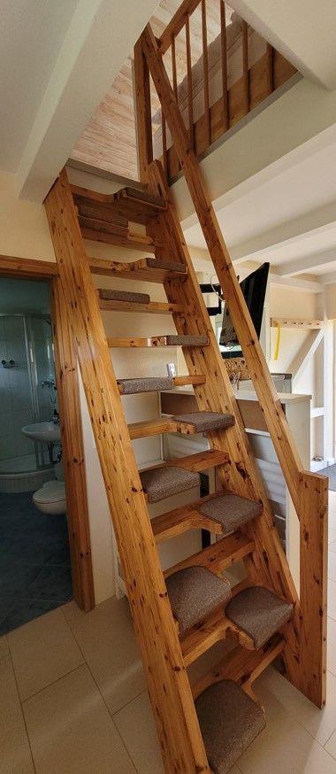 Es erwartet Sie im Erdgeschoss eine offene Einbauküche mit Geschirrspüler, Kaffeemaschine etc., ein behagliches Schlafzimmer mit einem Einzelbett mit Aufbettung (Ausziehbett) sowie einem Schrank und ein Bad mit Dusche, WC und Waschmaschine. Im OG, das mit einer steilen Spartreppe zu erreichen ist (für Gehbehinderte Menschen nicht geeignet), befindet sich ein offener Raum mit einem Doppelbett (durchgehende Matratze), Sofa-Sitzecke mit Flach TV/ Radio/ CD/ DVD, Klimaanlage und einem weiten Blick auf die Ostsee. Von der schönen großen Terrasse mit Terrassenmöbeln können Sie die Ruhe, die Landschaft, den Meerblick sowie den Sonnenuntergang genießen. Der Hof/Garten des Hauses steht zur gemeinschaftlichen Nutzung zur Verfügung.