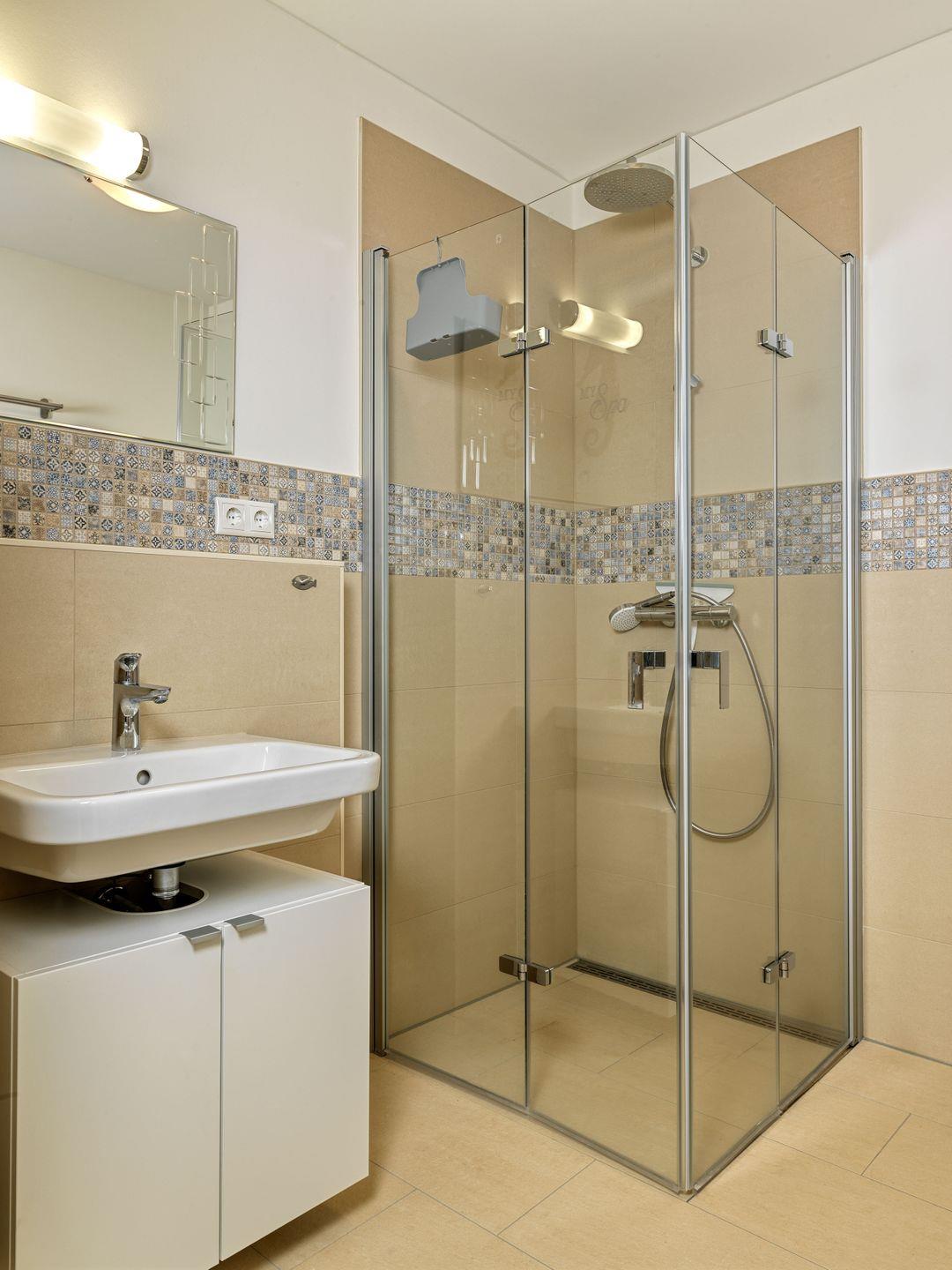 Das Bad ist mit Dusche/WC ausgestattet. Des Weiteren befindet sich gegenüber vom Bad ein abgeteilter Hauswirtschaftsraum.
